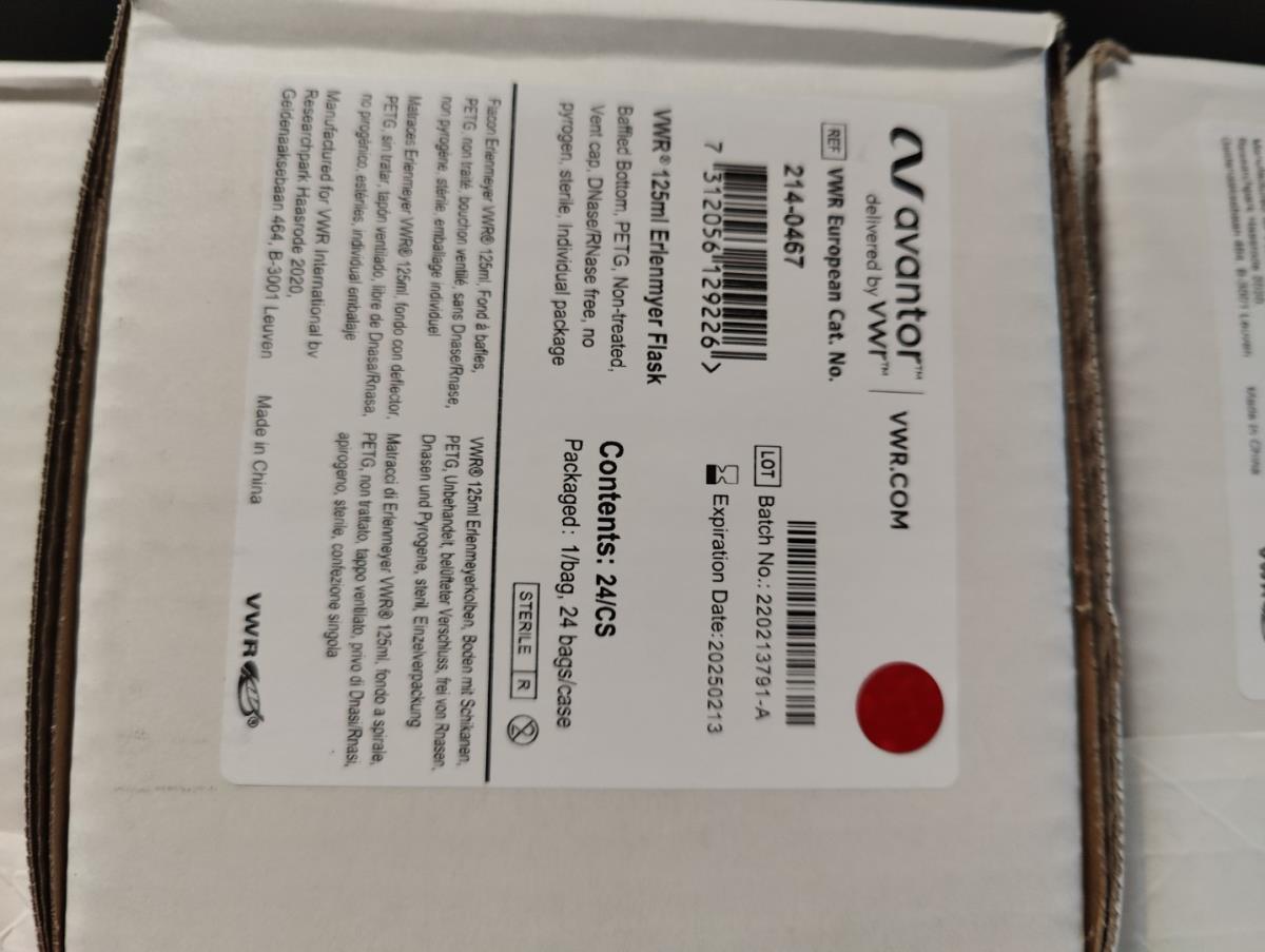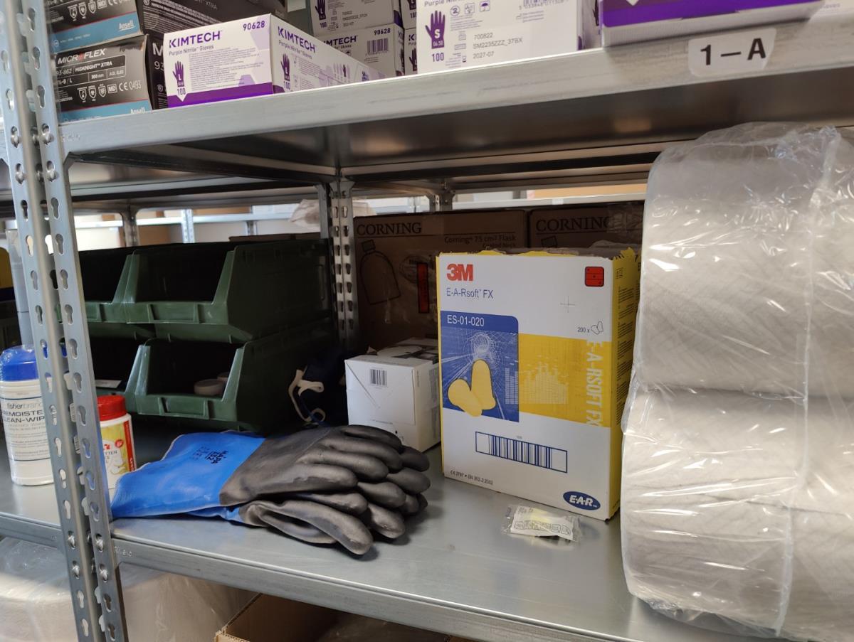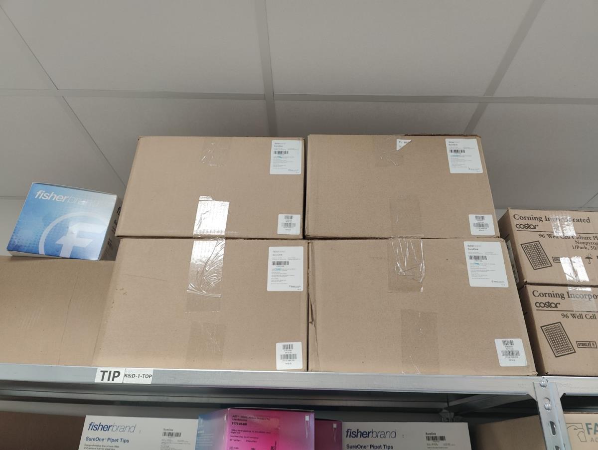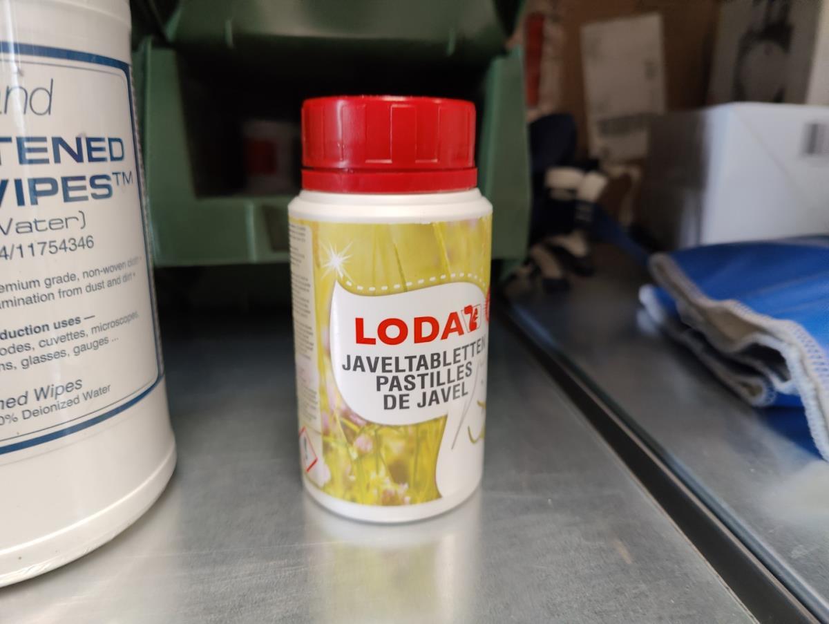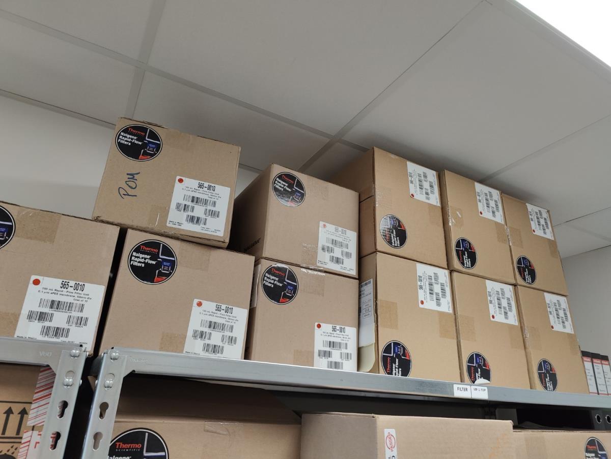 bu: div 2 Precisieweegschalen FISHERBRAND, Microcentrifuge tubes, ROTILABO Vriesboxen, CORNING cellstrainer, Tissue culture dish, FISHERBRAND plastic Syringe, Syringe filters, Cell culture plates, Tissue Culture plates, Pippet tips, Aerosol resistent tips, Universal Fit Pippet Tips, 2 meubelkarretjes MEISTER, Chemical spill kit, Sterilisation Pouches, Javel tabletten, schoonmaakmiddelen, PBM's, Lab coats, Stofzuiger BOSCH Serie 2, FIlter Caps, Cell Culture Multi flasks, Erlenmeyer flasks, Rapid flow filters, ea