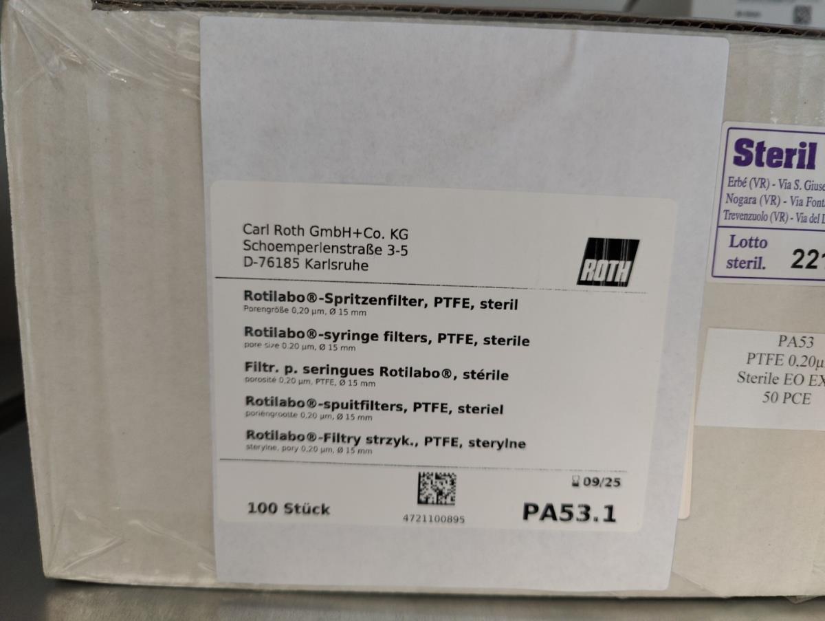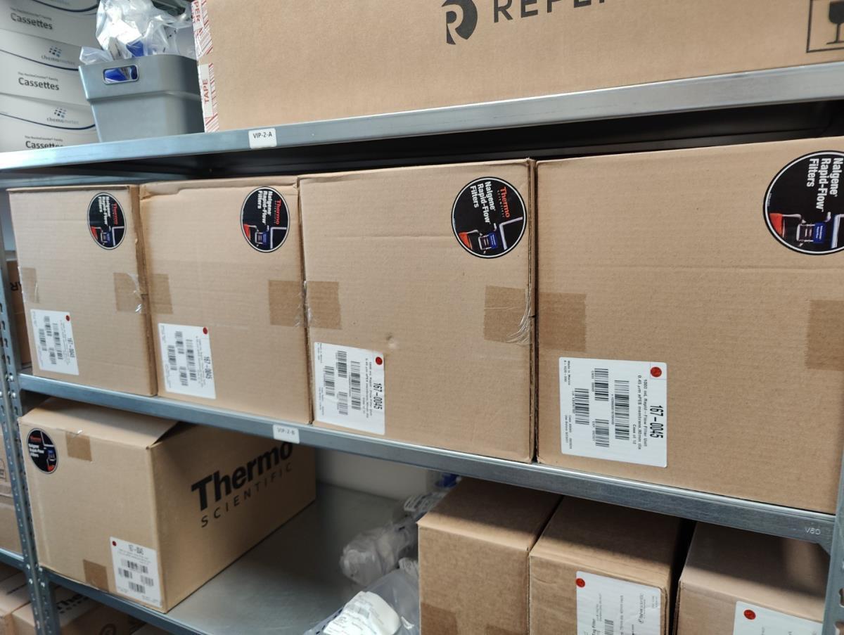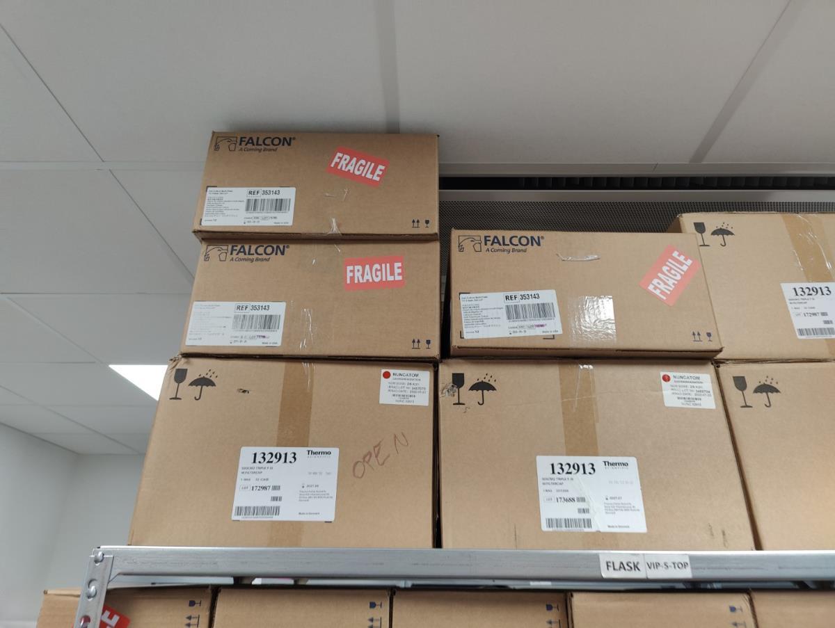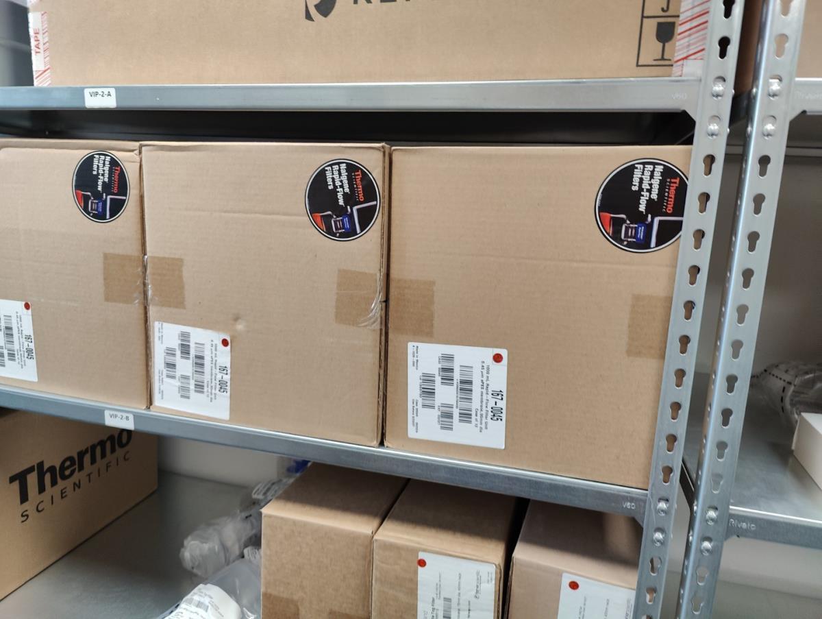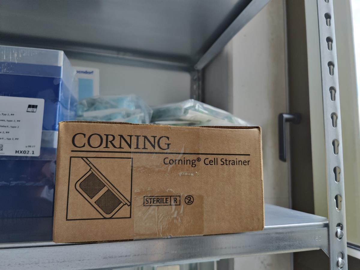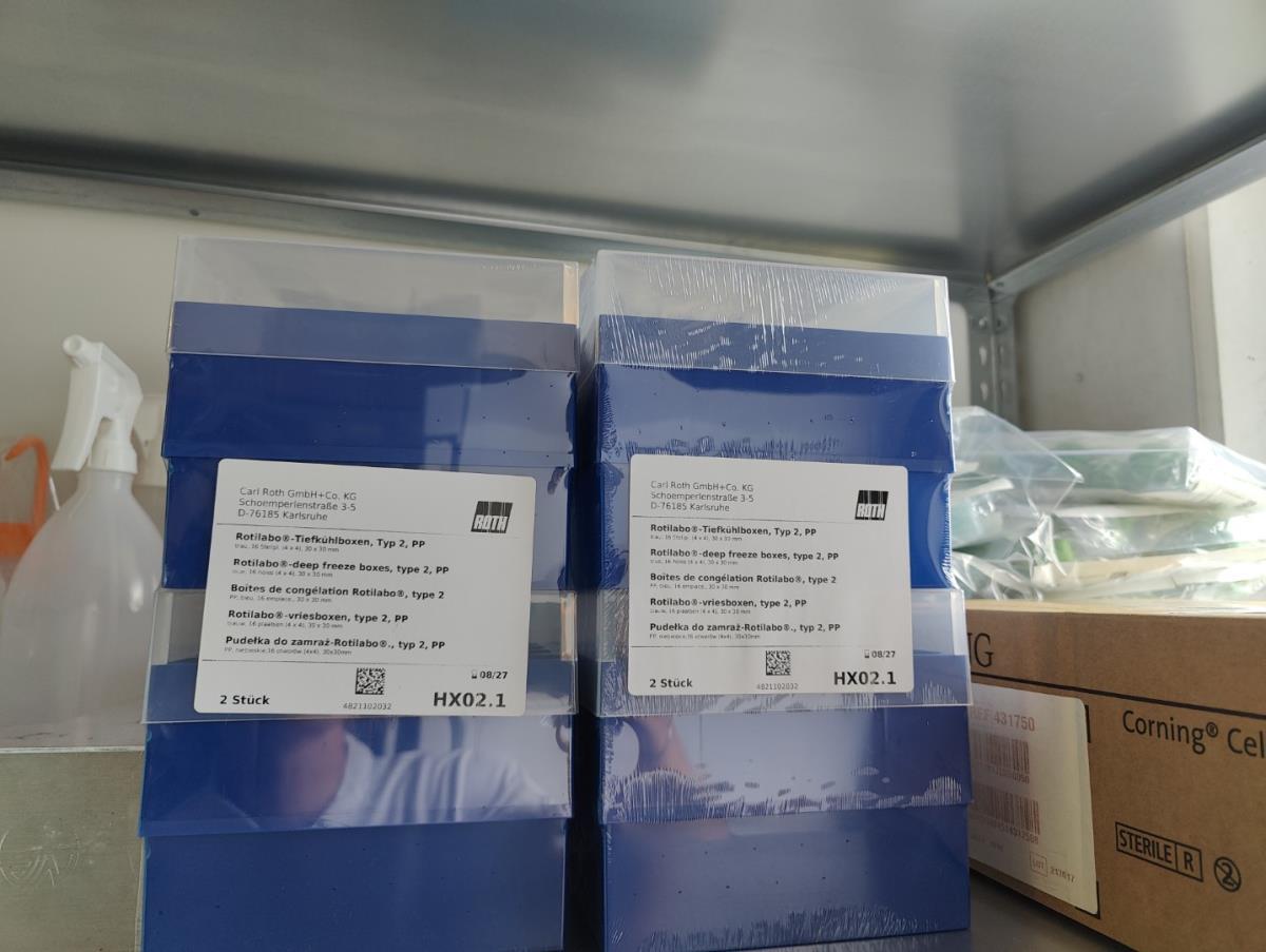 bu: div 2 Precisieweegschalen FISHERBRAND, Microcentrifuge tubes, ROTILABO Vriesboxen, CORNING cellstrainer, Tissue culture dish, FISHERBRAND plastic Syringe, Syringe filters, Cell culture plates, Tissue Culture plates, Pippet tips, Aerosol resistent tips, Universal Fit Pippet Tips, 2 meubelkarretjes MEISTER, Chemical spill kit, Sterilisation Pouches, Javel tabletten, schoonmaakmiddelen, PBM's, Lab coats, Stofzuiger BOSCH Serie 2, FIlter Caps, Cell Culture Multi flasks, Erlenmeyer flasks, Rapid flow filters, ea