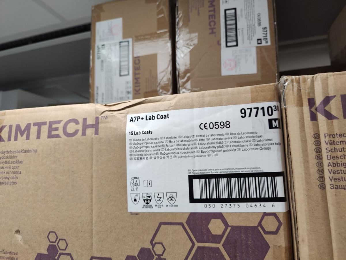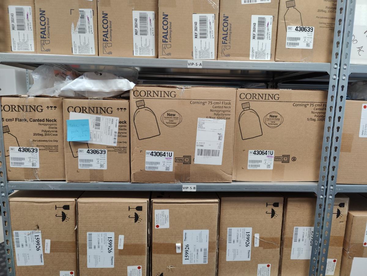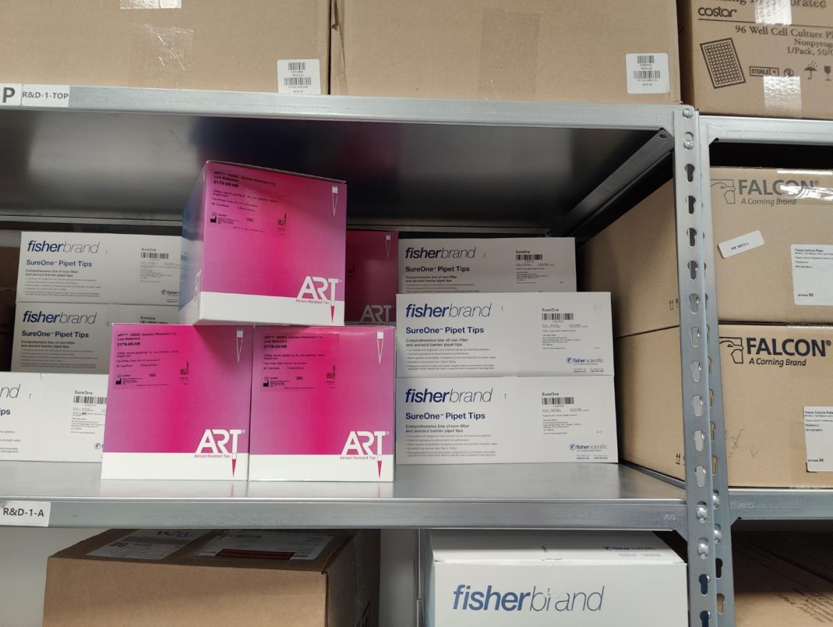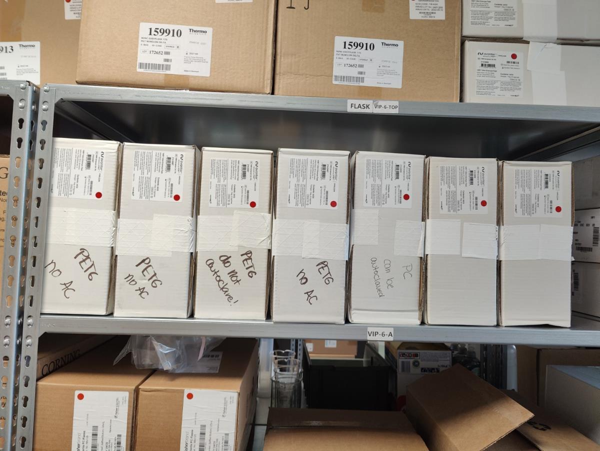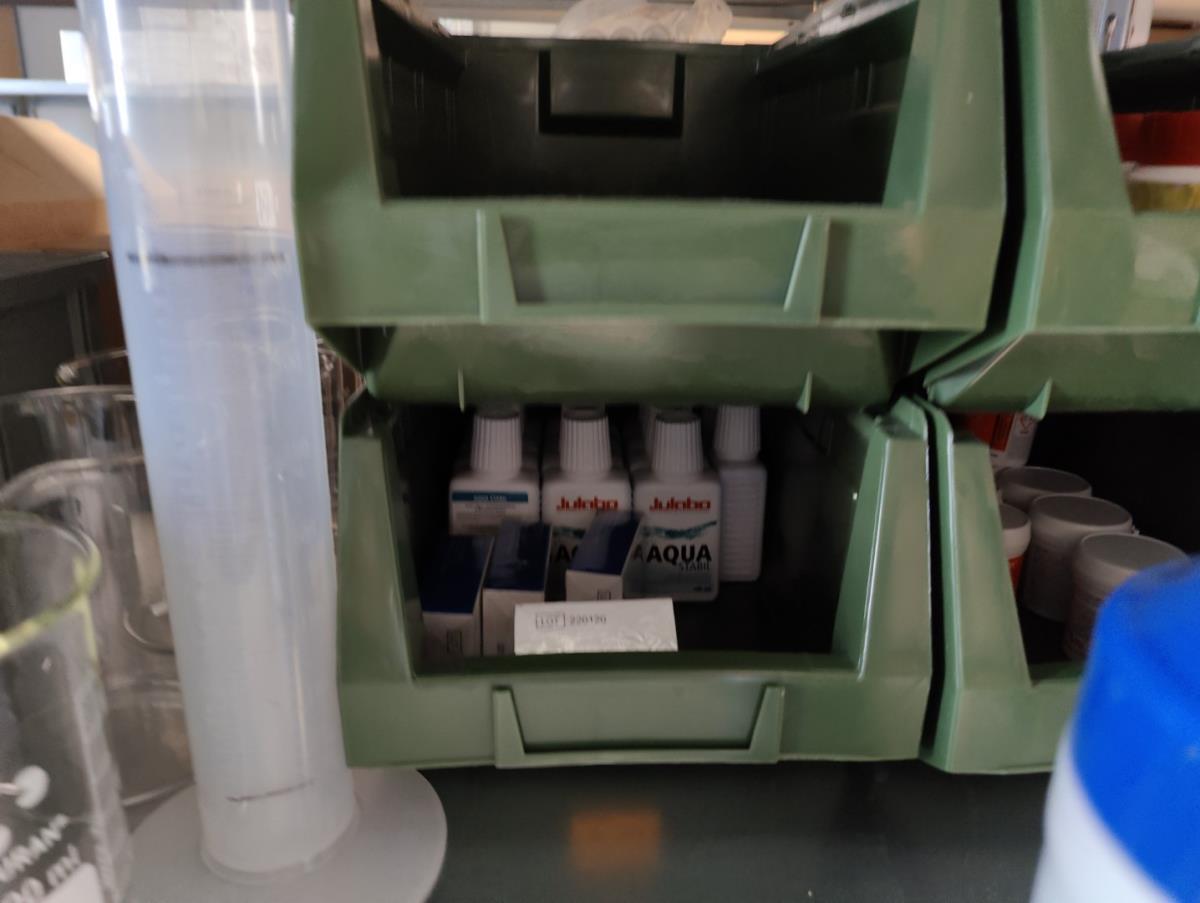 bu: div 2 Precisieweegschalen FISHERBRAND, Microcentrifuge tubes, ROTILABO Vriesboxen, CORNING cellstrainer, Tissue culture dish, FISHERBRAND plastic Syringe, Syringe filters, Cell culture plates, Tissue Culture plates, Pippet tips, Aerosol resistent tips, Universal Fit Pippet Tips, 2 meubelkarretjes MEISTER, Chemical spill kit, Sterilisation Pouches, Javel tabletten, schoonmaakmiddelen, PBM's, Lab coats, Stofzuiger BOSCH Serie 2, FIlter Caps, Cell Culture Multi flasks, Erlenmeyer flasks, Rapid flow filters, ea