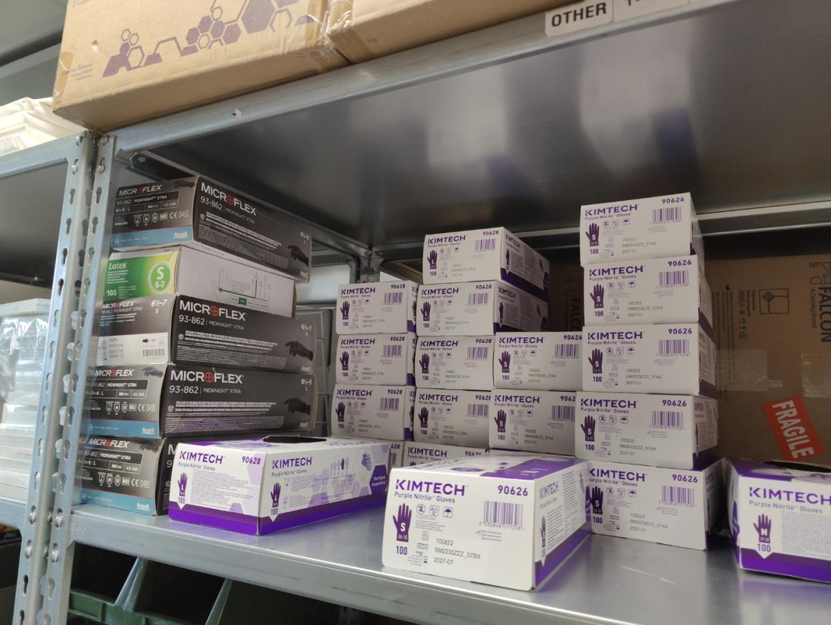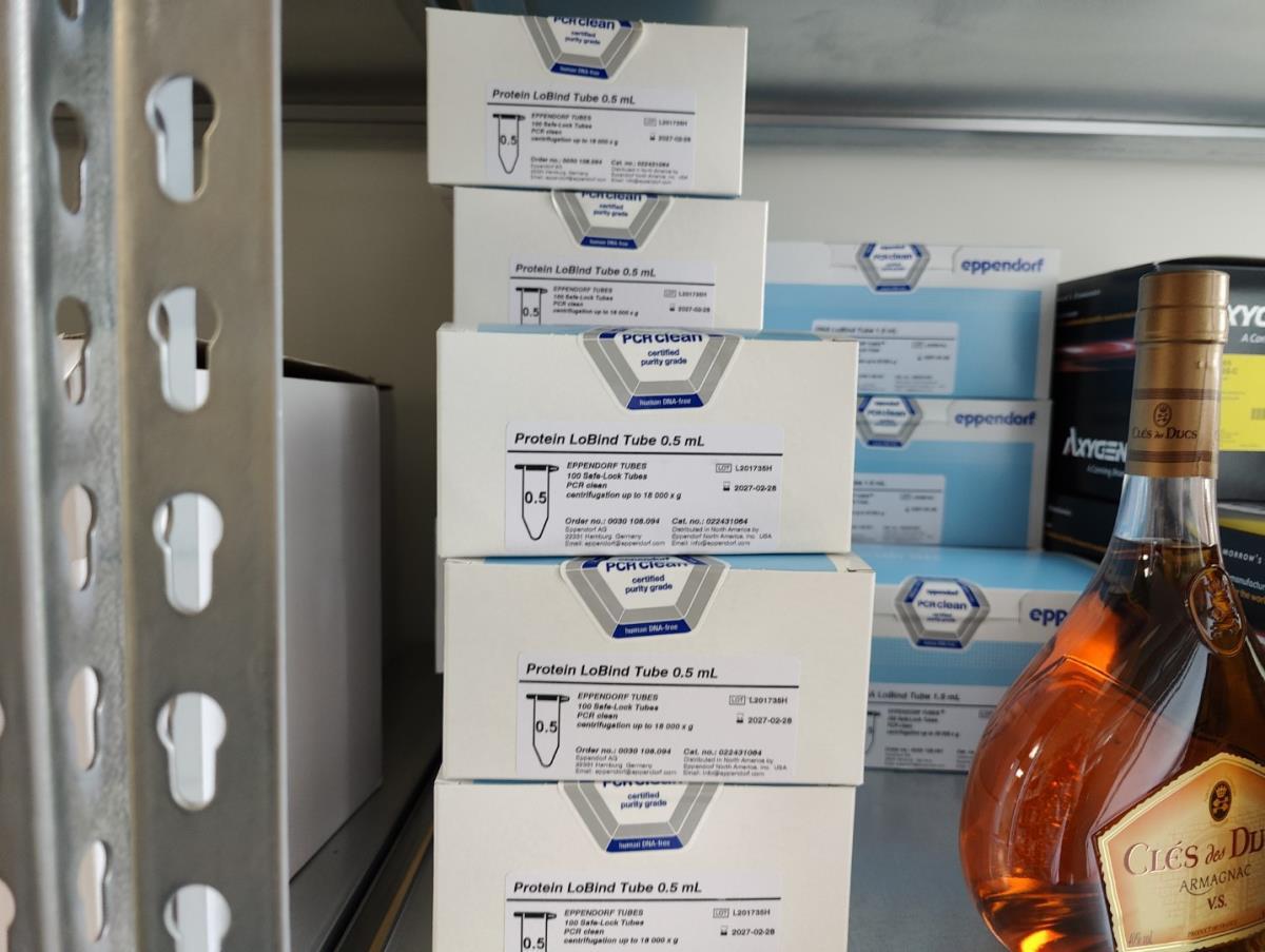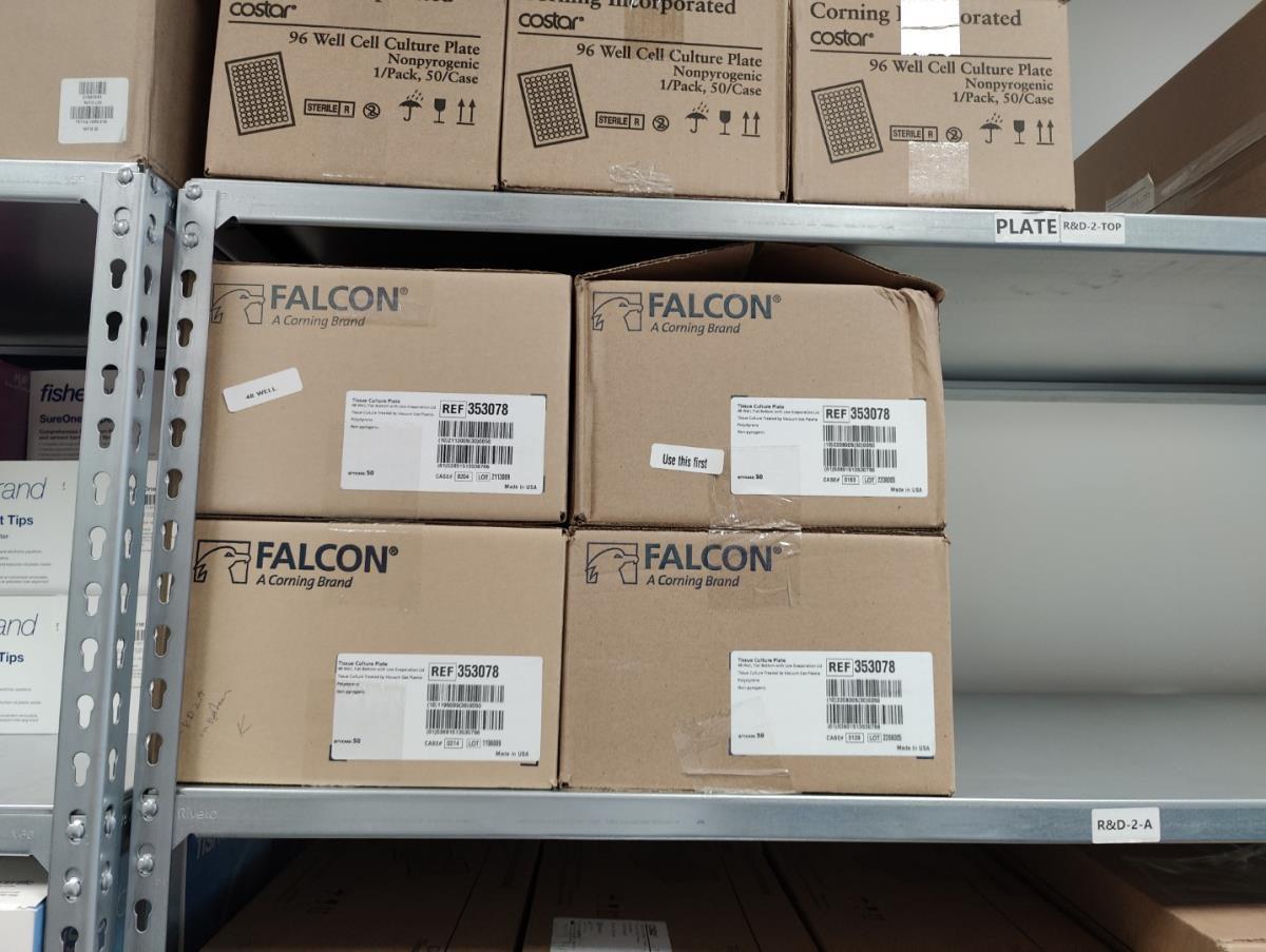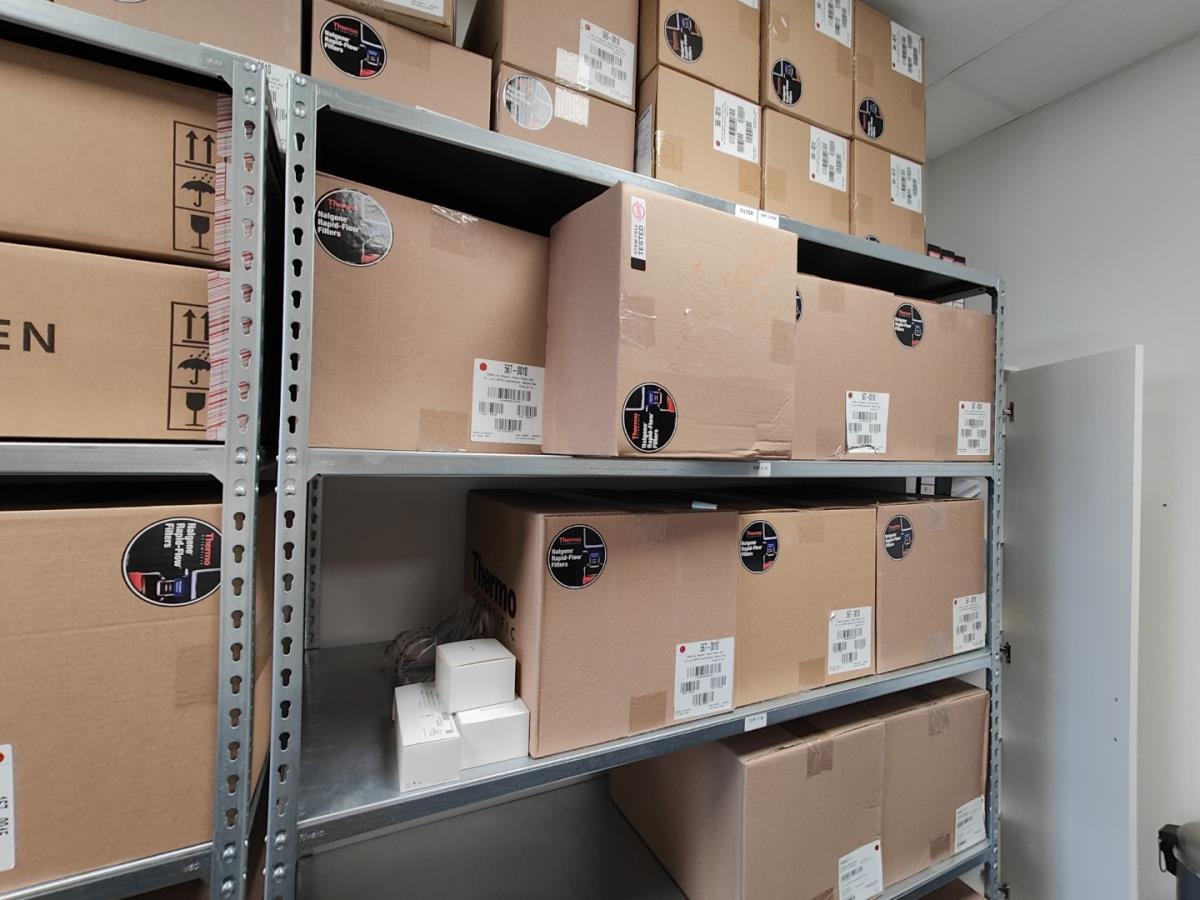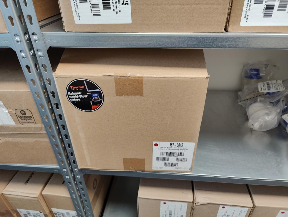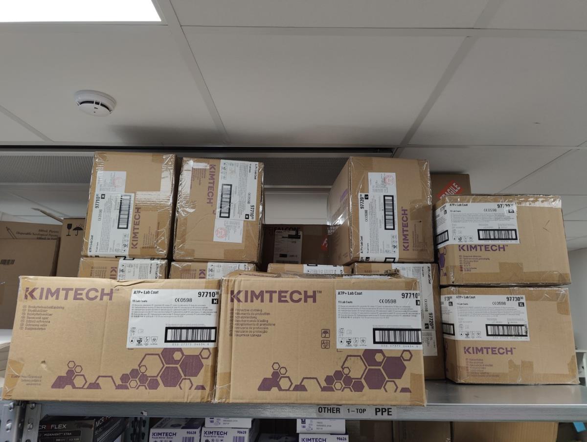 bu: div 2 Precisieweegschalen FISHERBRAND, Microcentrifuge tubes, ROTILABO Vriesboxen, CORNING cellstrainer, Tissue culture dish, FISHERBRAND plastic Syringe, Syringe filters, Cell culture plates, Tissue Culture plates, Pippet tips, Aerosol resistent tips, Universal Fit Pippet Tips, 2 meubelkarretjes MEISTER, Chemical spill kit, Sterilisation Pouches, Javel tabletten, schoonmaakmiddelen, PBM's, Lab coats, Stofzuiger BOSCH Serie 2, FIlter Caps, Cell Culture Multi flasks, Erlenmeyer flasks, Rapid flow filters, ea