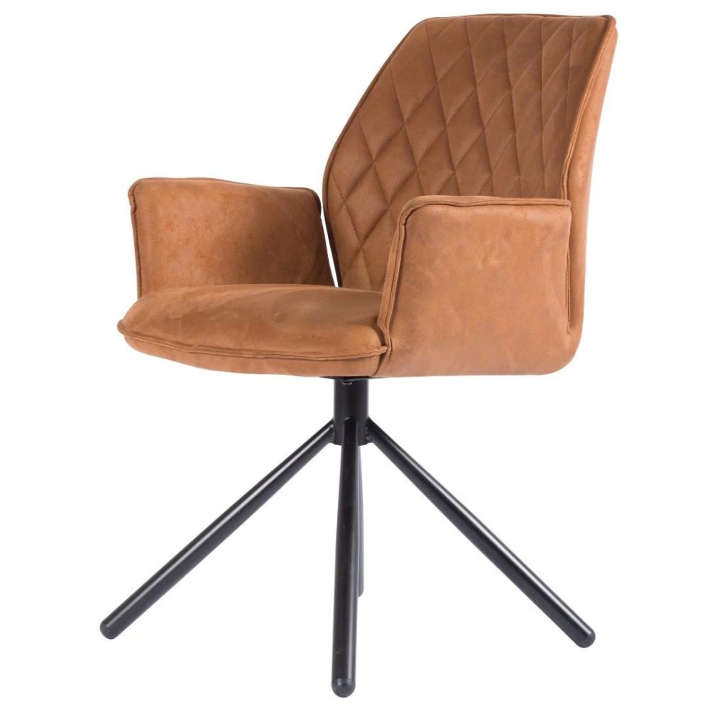 6x Design eetkamerstoel, model: LDN-Hcognac, kleur: cognac, microvezel stof, verzwaard onderstel, draaibaar