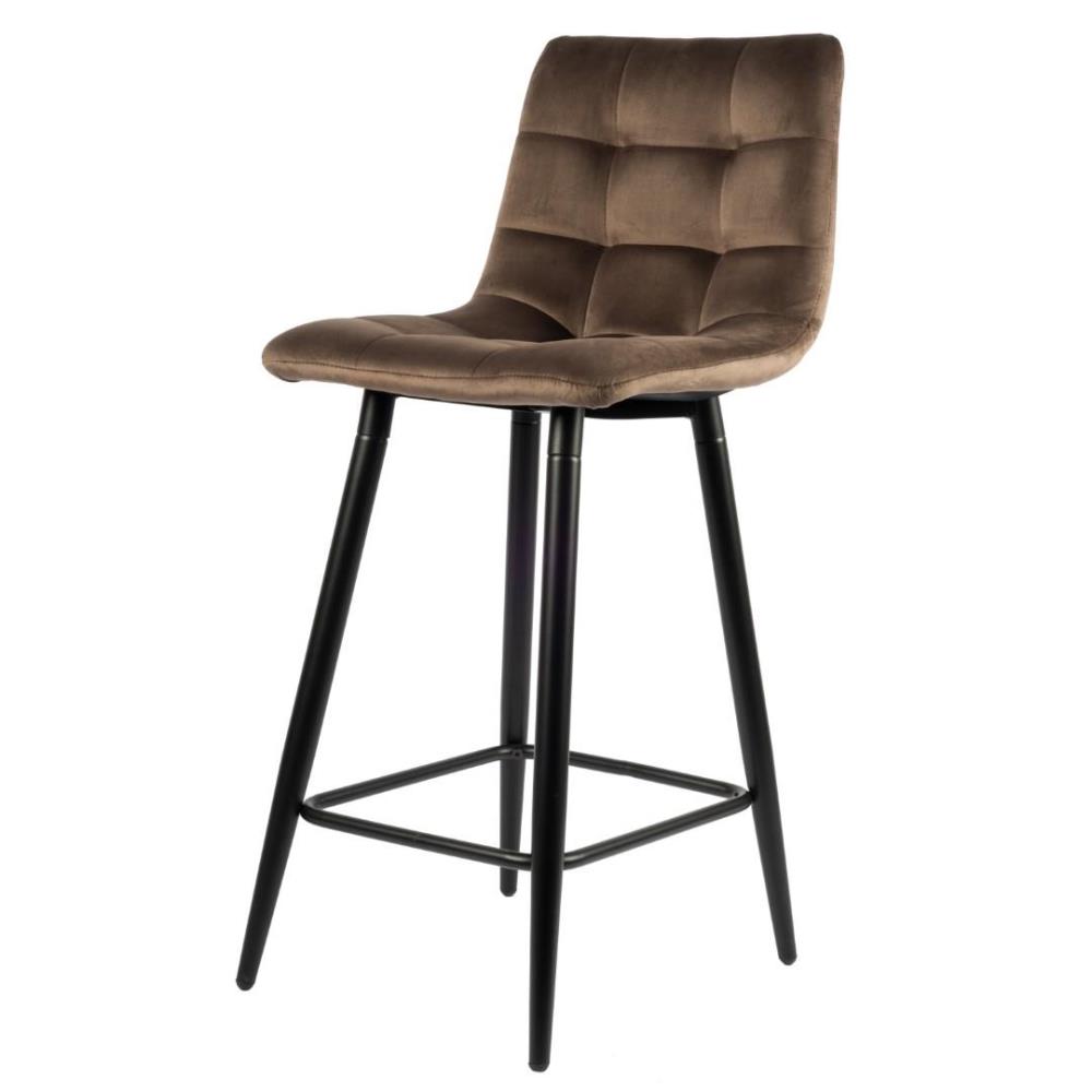 4x Design barkruk, Model: 8078-38, Kleur: bruin, velvet stof, gecoat onderstel