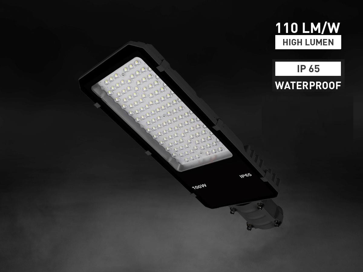 6 x 100W Straat Verlichtingen PRO SMD LED Waterdicht 5000K - lichtstroom 11000 lumen - lumen/watt 110 hoog lumen - lichtkleur daglicht 5000K - waterdicht IP65 - stralingshoek 90° - met lens - product kleur zwart - afm. 520 x 210 x 67mm - materiaal aluminium - bevestigingsset niet inclusief - levensduur 30.000 uren - voltage 85-265V - SKU 00505