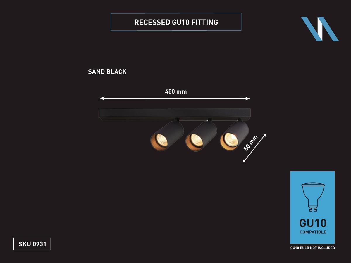 6 x GU10 Opbouwspot Armatuur triple cilinder zand zwart draaibaar - afdichting IP20 - product kleur zand zwart - afm. Ø 55 x 100mm - afm wandhouder 450 x 50mm - draaibaar 350° en kantelbaar 90° - materiaal aluminum en ijzer - bevestiging inclusief - fitting GU10 - bulb niet inbegrepen - geschikt voor binnen - 3 x bulb invoer - voltage 220-240V - max 35 watt - SKU 00931