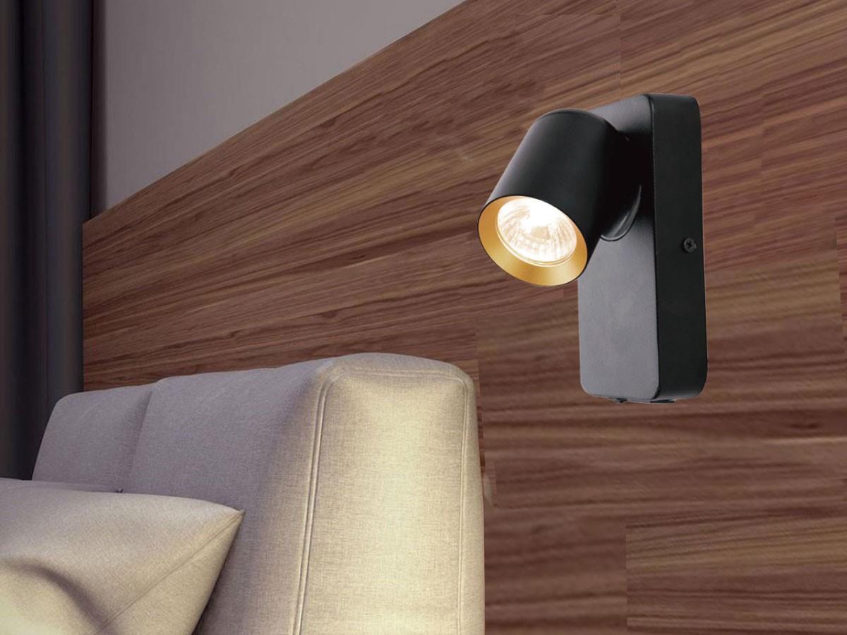 10 x Bedlamp Wandlamp GU10 Armatuur cilinder zand zwart en goud draaibaar - met aan/uit knop - afdichting IP20 - product kleur zand zwart en goud ring - afm. Ø 60 x 100mm cilinder kop 75 x 140mm wandhouder - draaibaar 350° en kantelbaar 50° - materiaal aluminum - bevestiging inclusief - fitting GU10 - bulb niet inbegrepen - geschikt voor binnen - een bulb invoer - voltage 220-240V - max 20 watt - SKU 00942