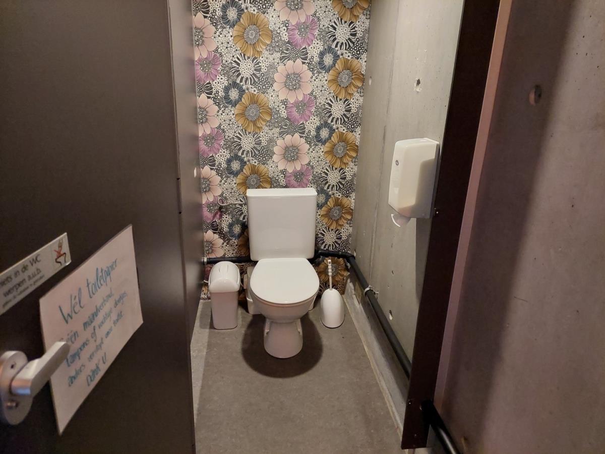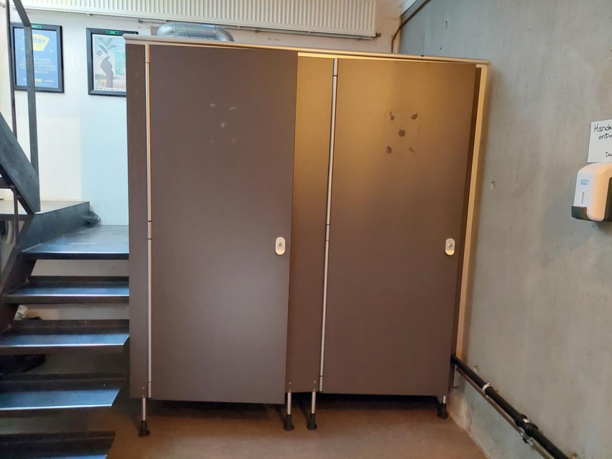 vv 2 toilet met vergruizer, wc papierhouder, borstels, verlichting ( koper staat zelf in voor demontage en vervoer zonder schade aan het gebouw te berokkenen) afm-plm 1870x1460x2080mm