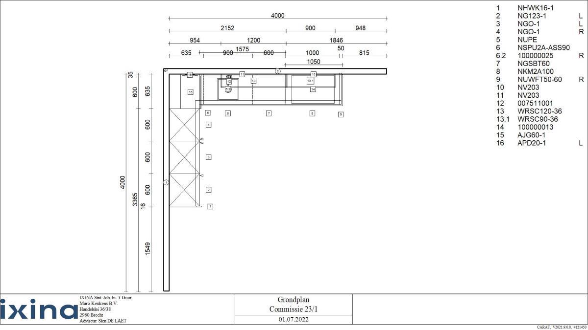 Betreft keuken zonder toestellen