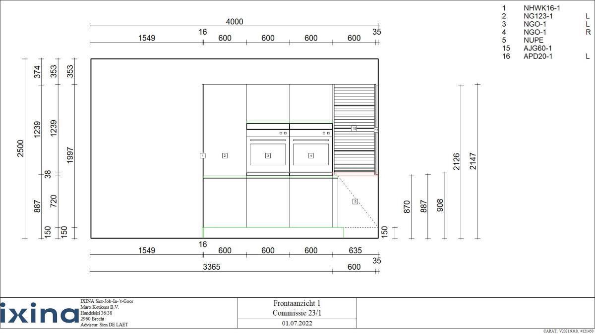 Wandmeubel: 2450x600x2150mm