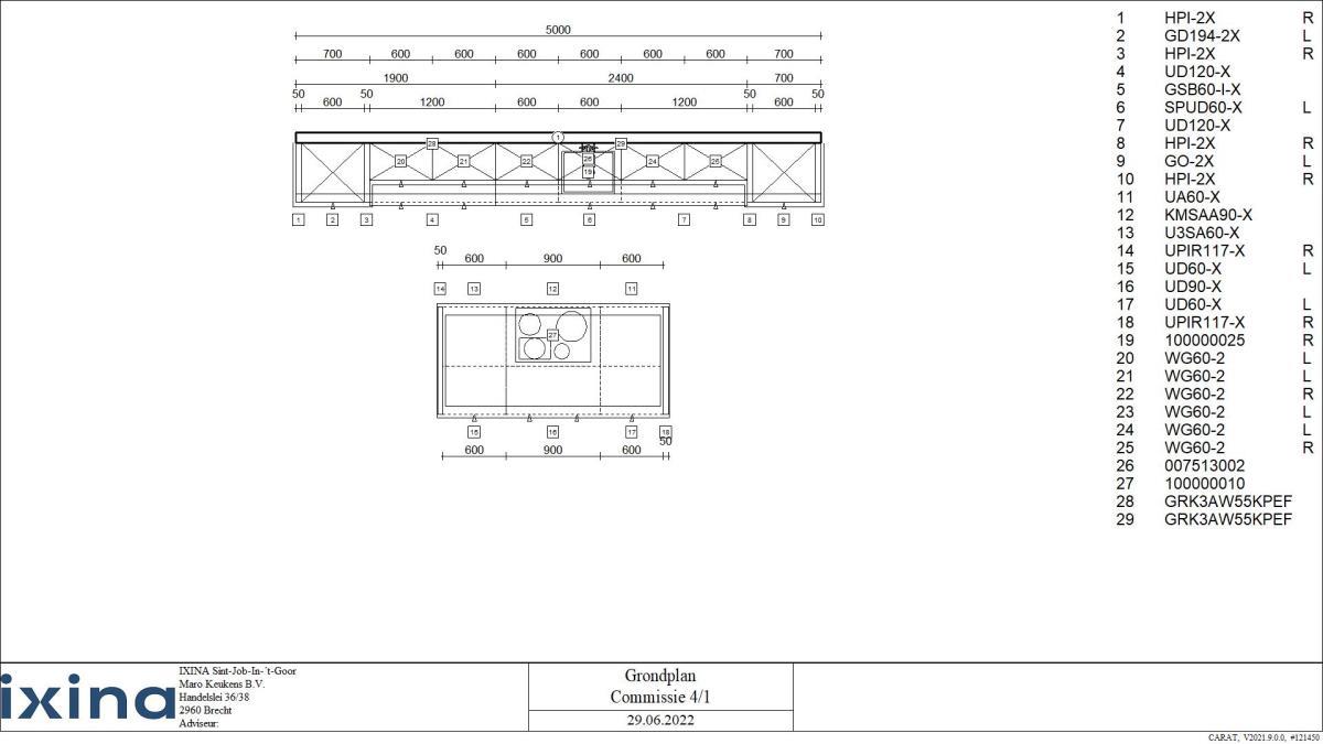 Aanrecht : 3600x600x920mm