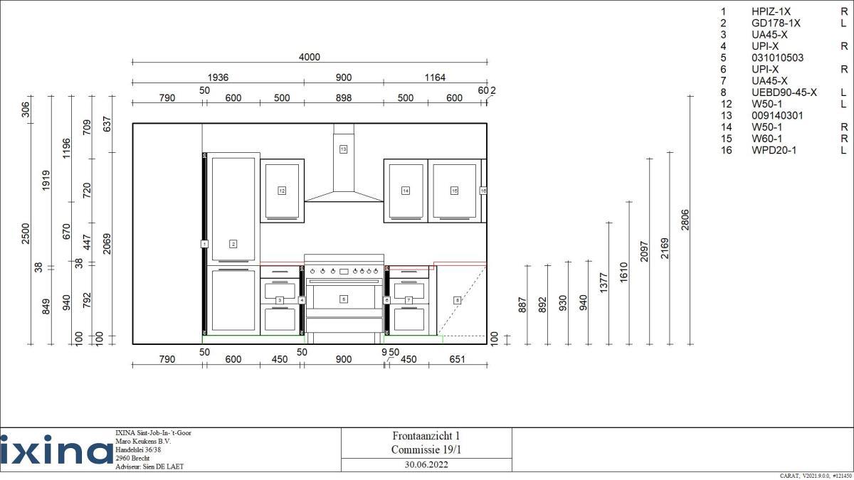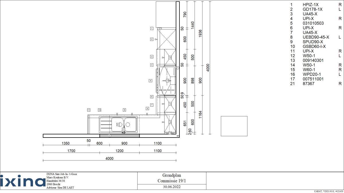 | Betreft keuken INCLUSIEF toestellen Afmetingen plm: controleer technische plannen (zie foto's) Aanrecht A (L vuur): 500x600x930mm Aanrecht B (R vuur): 1150x600x930mm Aanrecht C (spoelbak): 2060x600x930mm Hangkast L: 500x375x715mm Hangkast R: 1150x375x715mm Staande module: 645x590x2170mm Opgelet: De koper dient deze zelf op een professionele manier te demonteren zonder schade te berokkenen aan het gebouw Grondplannen zijn beschikbaar: Zie foto's |