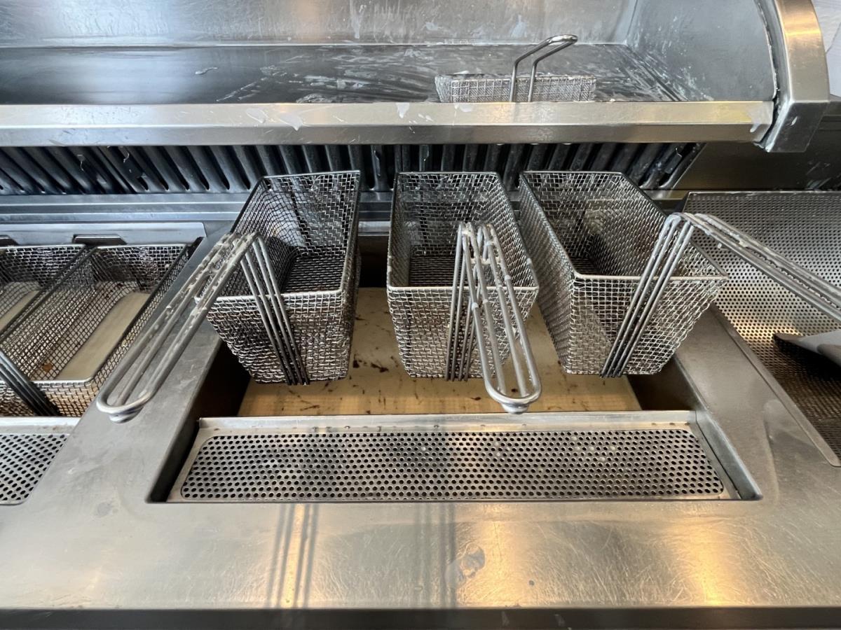 Rvs frituese vv 9 manden en 3 branders, type PHR S3, categorie A3. Koper staat zelf in voor demontage en werkgerei!!! Afm-plm 2800x95x1800mm