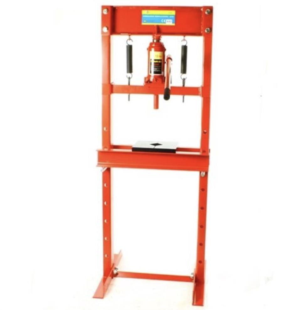 Werkplaatspers met en capaciteit van 12 Ton voor persen en buigen. Pers hangt in staamd frame; afm. Hoogte 1.350 mm, breedte 505 mm. Verpakt in 2 dozen; bouwjaar 2024; ongebruikt en verpakt