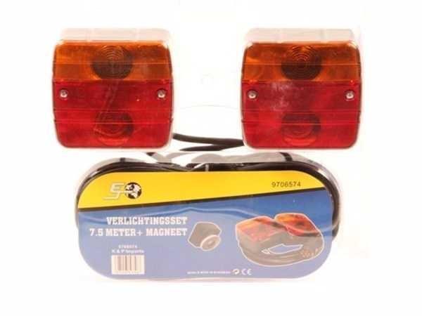 3 stuks meerkamerachterlichten; bevestigd op sterke magneet; 7,5 mtr kabel met 7-polige stekker; incl lampjes (2x21W bol/2x21/5W bol); ongebruikt en verpakt