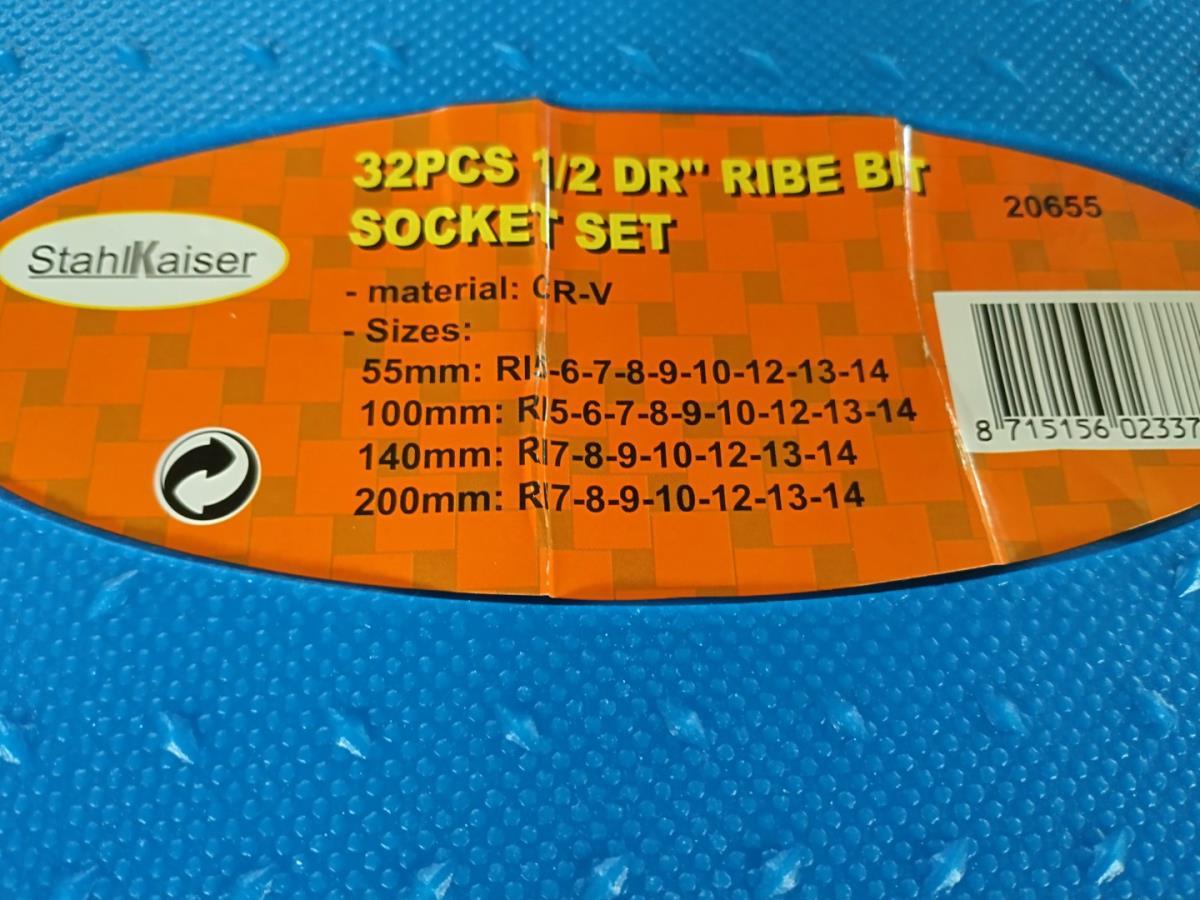 4x doppenset 1/2", Ribe set 32 dlg, Hex (inbus) 30 delig, Spline set 26 delig, en Torx set van 32 delig. Allen proffesionele kwaliteit van Stahlkaiser, nieuw in koffers