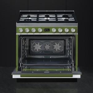 Fornuis;gas;90 cm;olijfgroen;6 branders