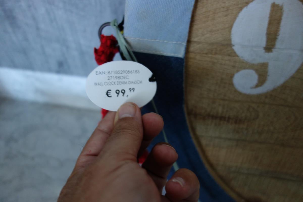 Wandklok;denim (jeans)65 cm (winkelprijs 99,95 euro)