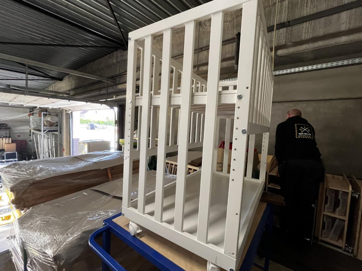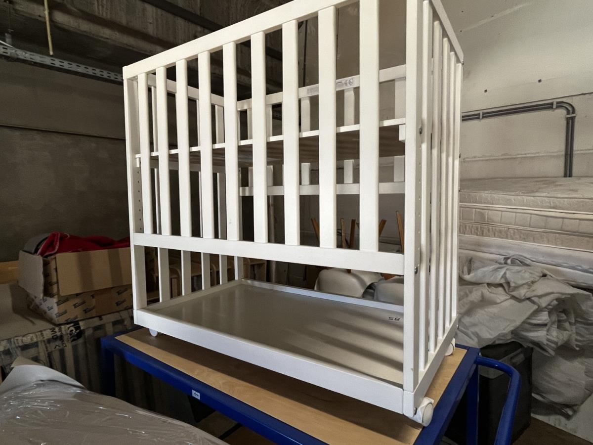 Wiegbedjes voor baby’s, kleur wit. 1 zijde kan omloog gedaan worden. Afmetingen 50x90cm. Matras niet inbegrepen.