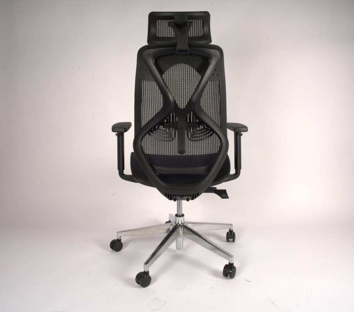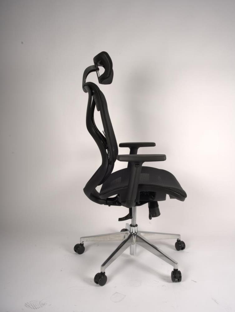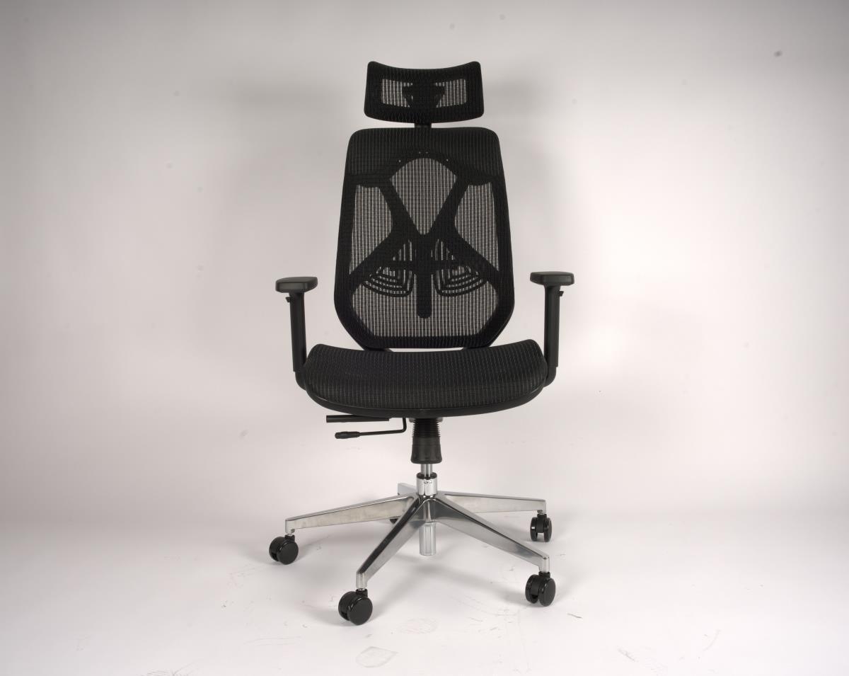 1x Ergo bureaustoel, model: 1 , kleur: zwart, eigenschappen: 100% ergonomisch; zitting gestoffeerd en rugleuning van mesh, zitting in hoogte en diepte verstelbaar, rug in hoogte verstelbaar, meebewegende lendensteun, extra verzwaard, Dit betreft een nieuw product.