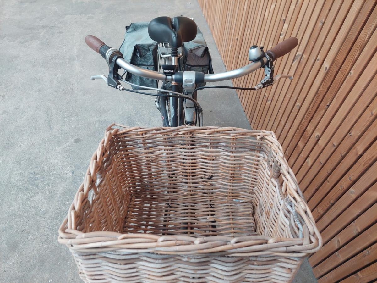 vv Rieten voormand op drager dubbele fietszak