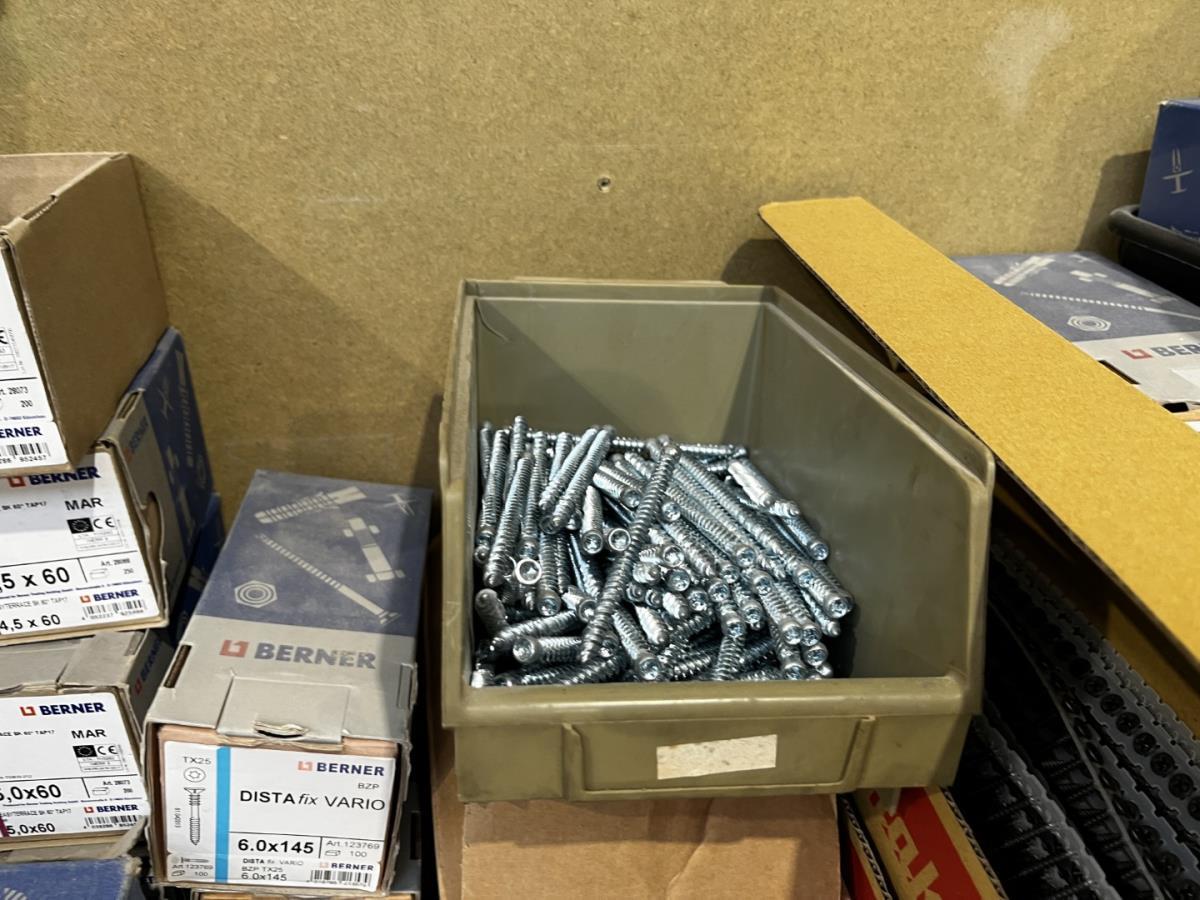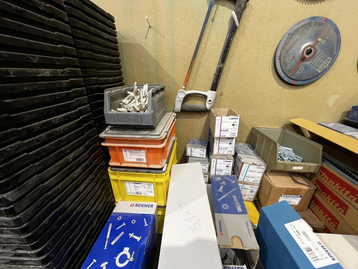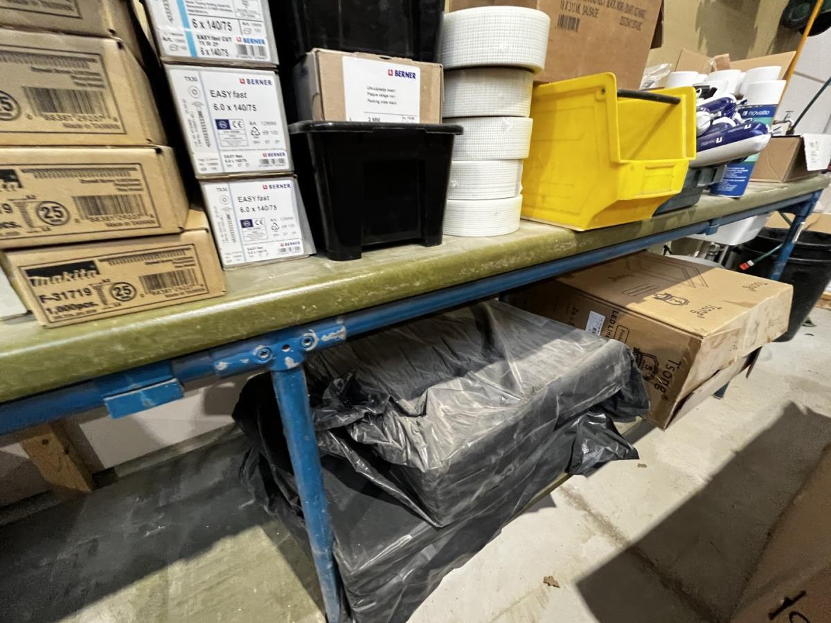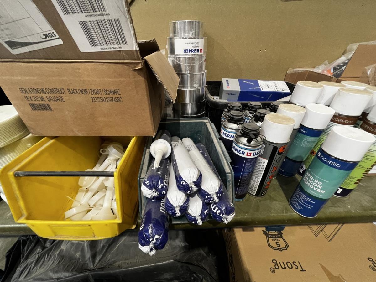 bu div onderhoudsproducten, reinigingsproducten, BERNER, NOVATIO, 2-Componentenlijm BERNER, Isolatietape BERNER, vasttapijttegels, uitvulplaatjes, div schietschroeven MAKITA, GYPROC TEKS schroeven, div zaagbladen en schuurschijven… ea