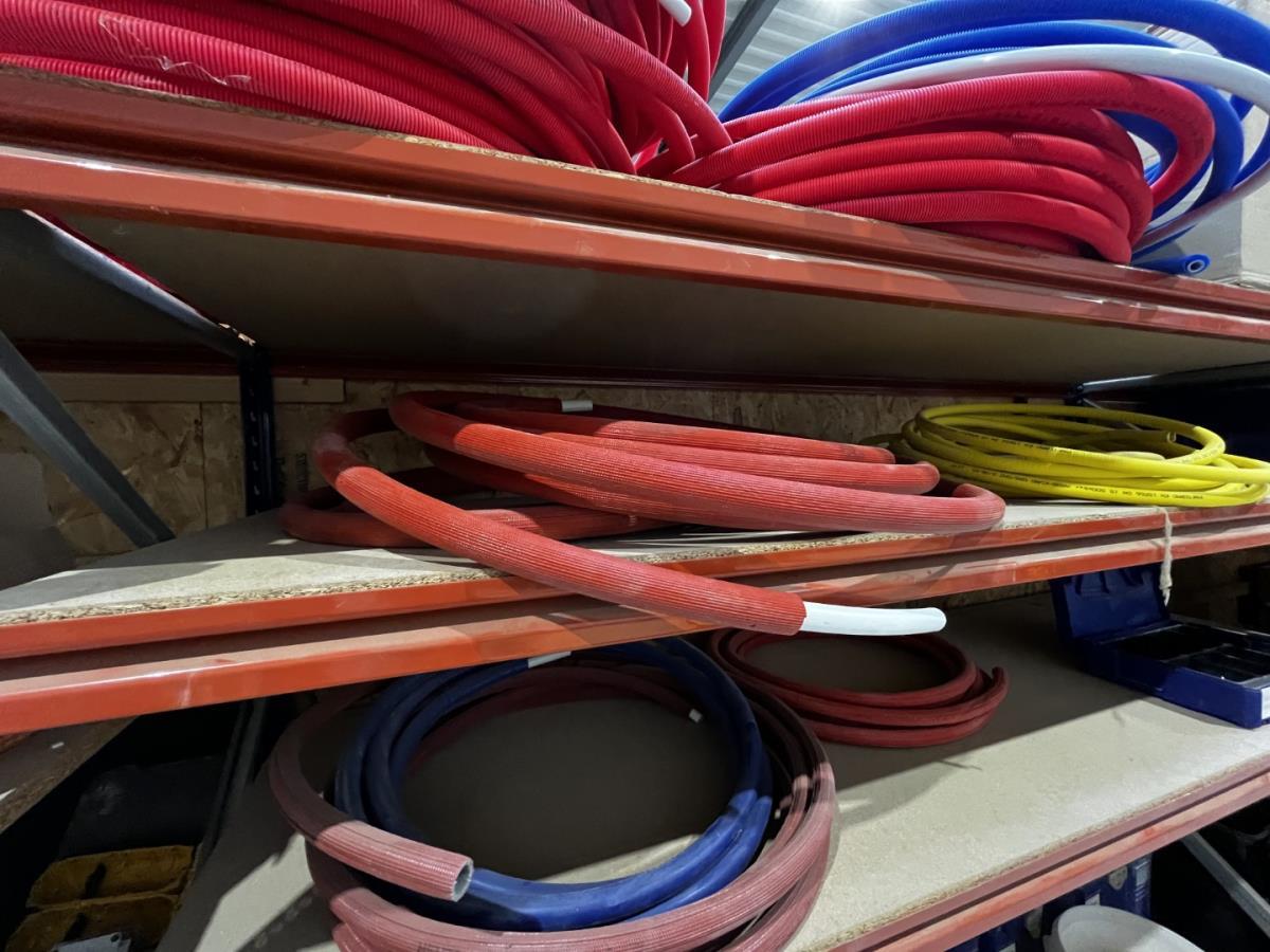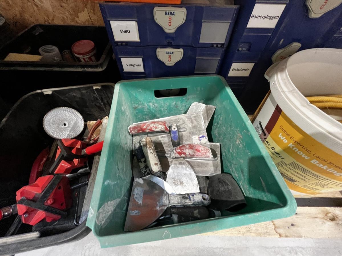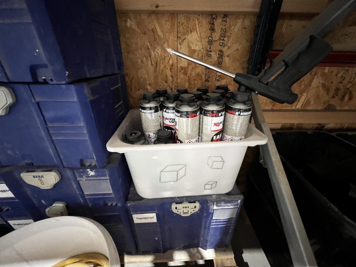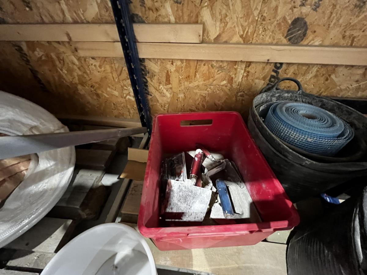 bu waterleidingslangen, PVC koppelstukken en ellebogen, koperen en messing koppelstukken, flexibels, houten schragen, terrasverhogers, div tegelgerief, afgifte volgens aanwijzing, koper dient alles mee te nemen.