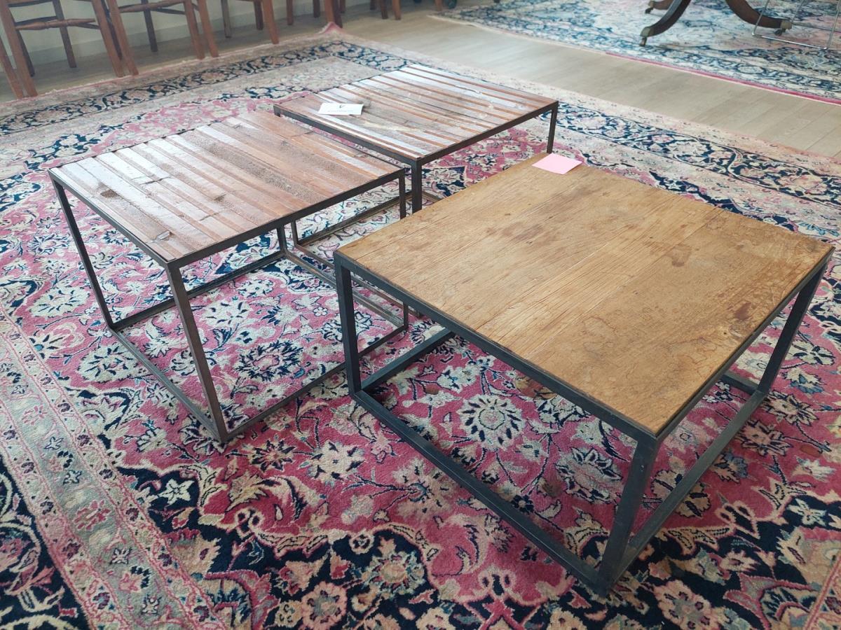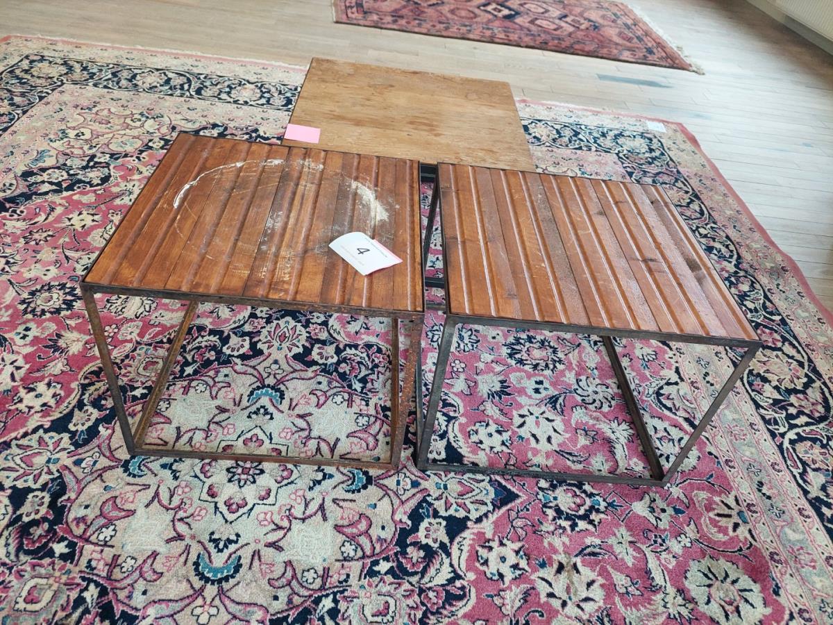 Numéro du lot 4: 3 Div houten bijzettafeltjes met metalen onderstel