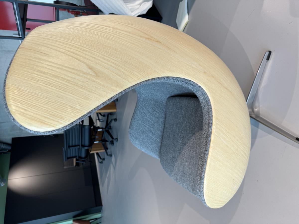 1x Egg Chair grijs fineer frame, kasmier stof, vintage look, kruispoot, draaibaar onderstel, draai en kantelbaar