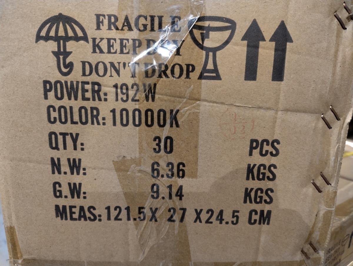 30 stuks led batten 1200mm lang, 192 watt, 10000K, 220 volt. Nieuw in doos