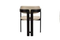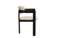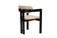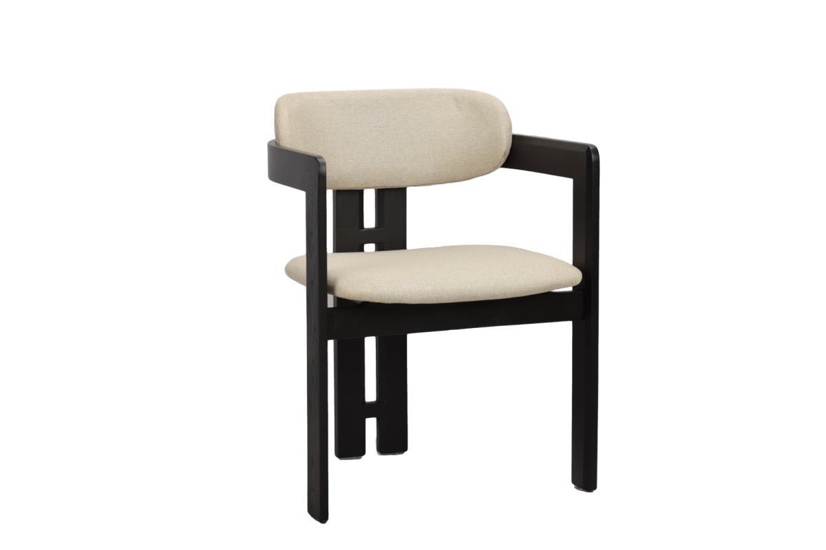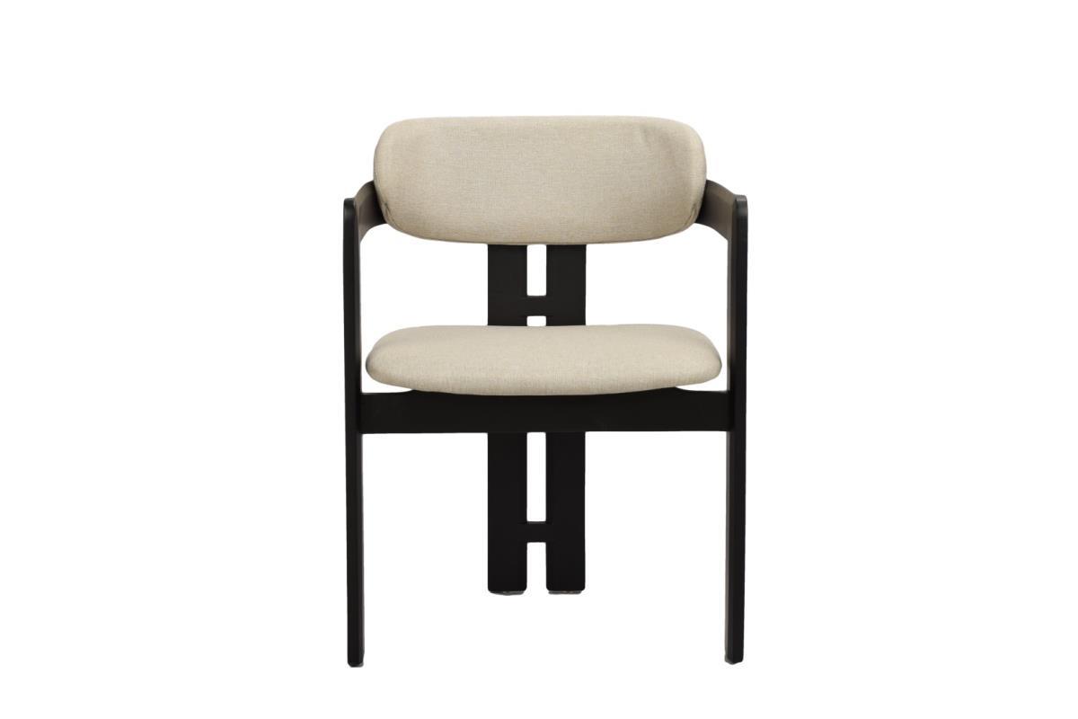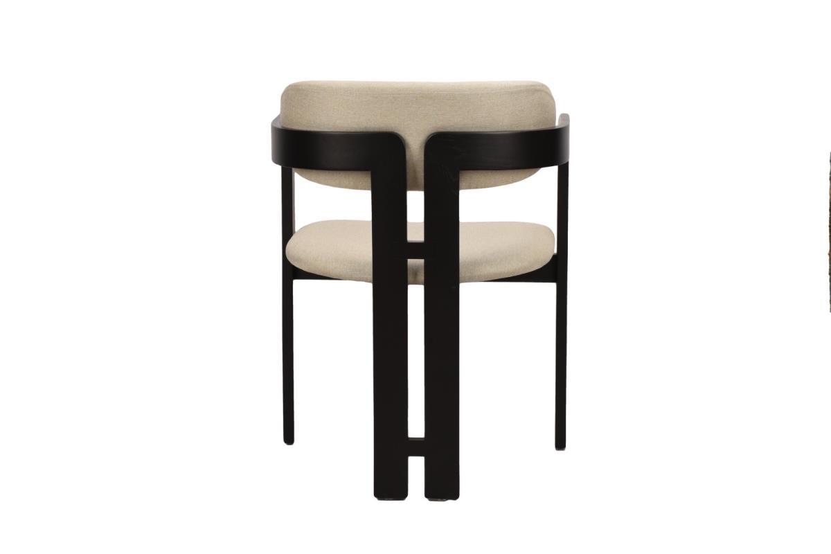 6x Design eetkamerstoel, model: Japndi, kleur: beige-zwart, massief houten frame met uitsparing, stof: beklede weave zitting en rugleuning