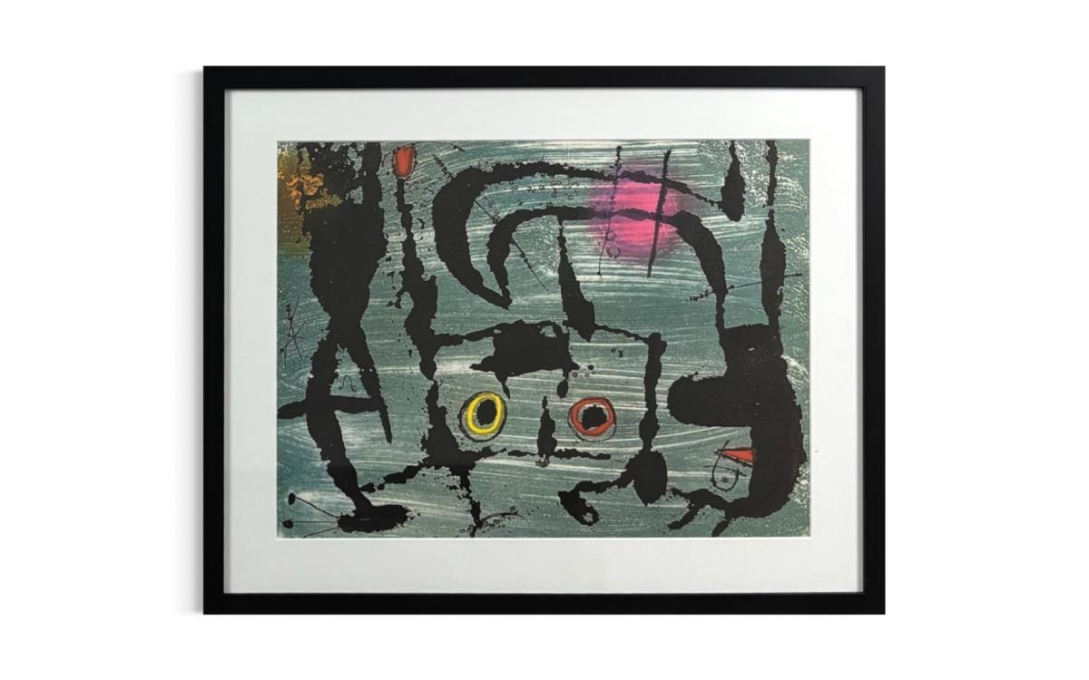Lithografie uit 1972 door Joan Miro - Gesigneerd in de plaat - Professioneel ingelijst 60x48 cm