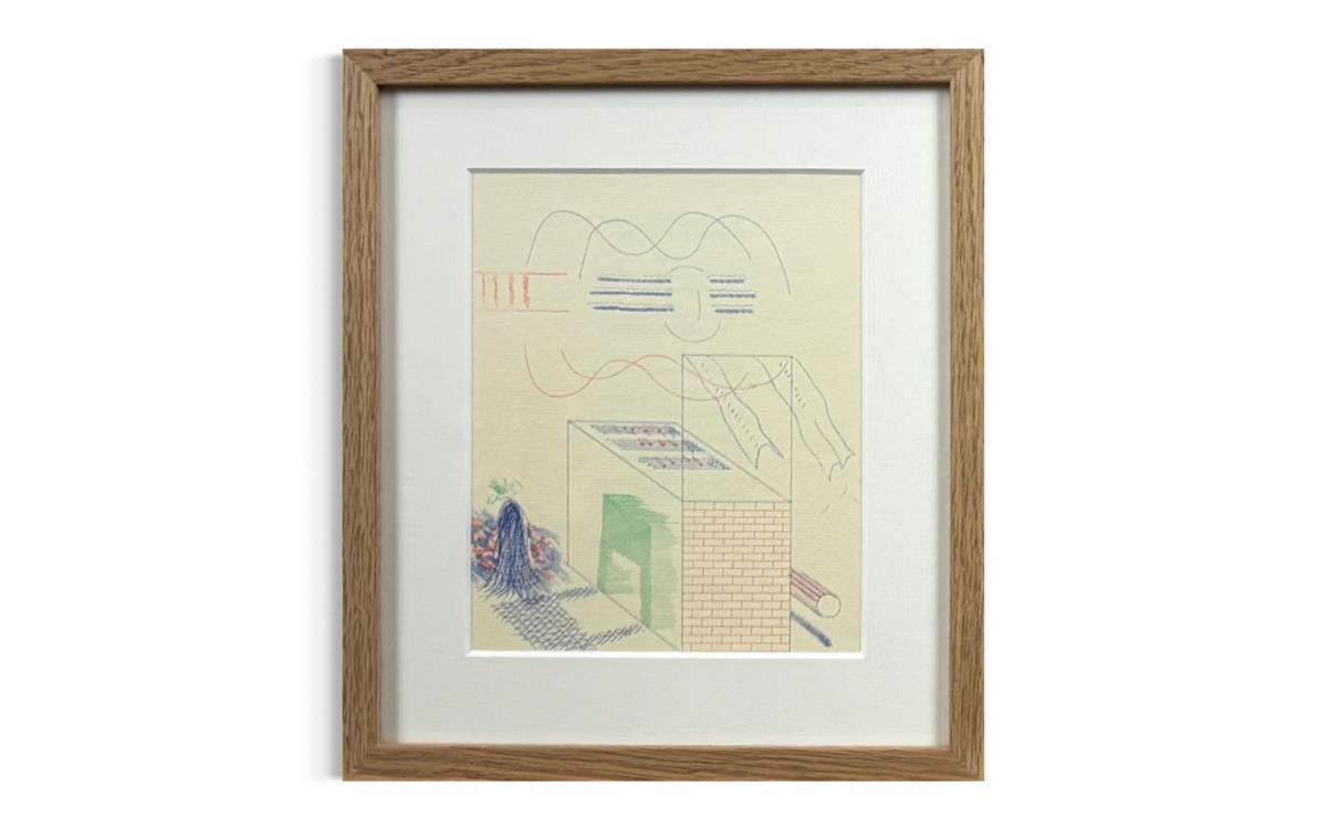 Lithografie uit 1977 door David Hockney - Professioneel ingelijst - Galerijprijs: 1250 25x28 cm