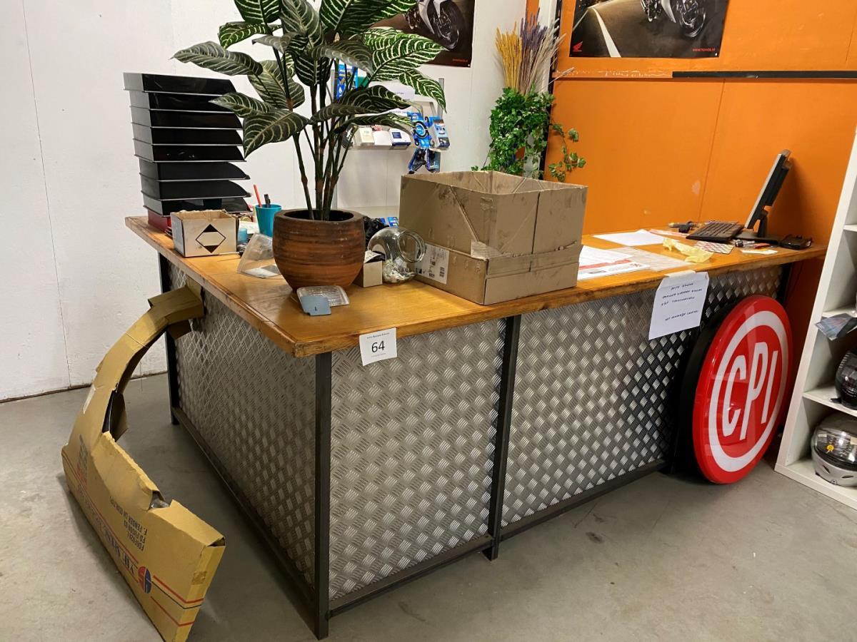vv traanplaat wand, houten werkblad, inh div boeken, magazines en catalogi, 1pc ACER vv scherm, toetsenbord en muis, folderdisplay inh quickfix kabels, helmlicht… , 1 metalen dossierkastje