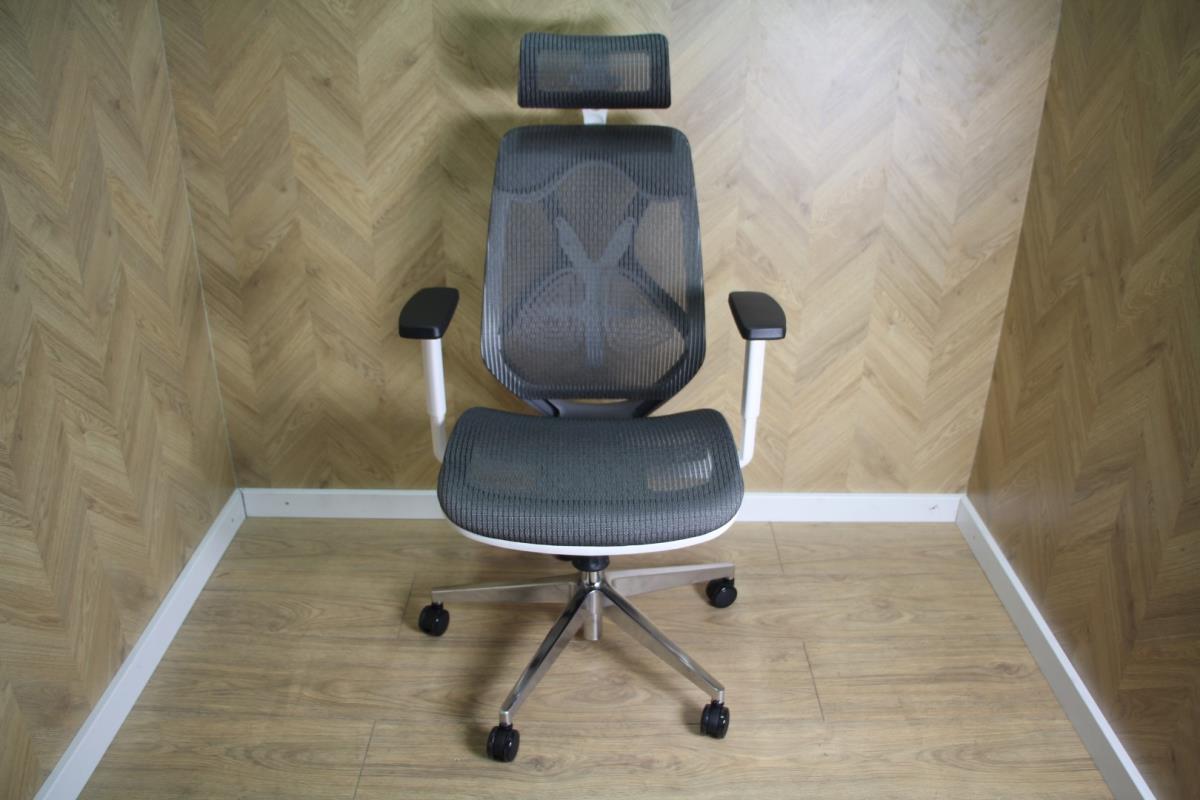 Model: Ergo-Line Giorno,100% Ergonomisch, Kleur: Grijs/wit, rugleuning mesh uitvoering en zit vlak volledig gestoffeerd; verstelbare rugleuning en zitting, met extra lendesteun, verstelbaar armleuning, diepte en kanteling verstelbaar hoofdsteun , chrome onderstel, extra verzwaard, sterpoot in Chrome met wielen, lock functie. Dit betreft een nieuw product.
