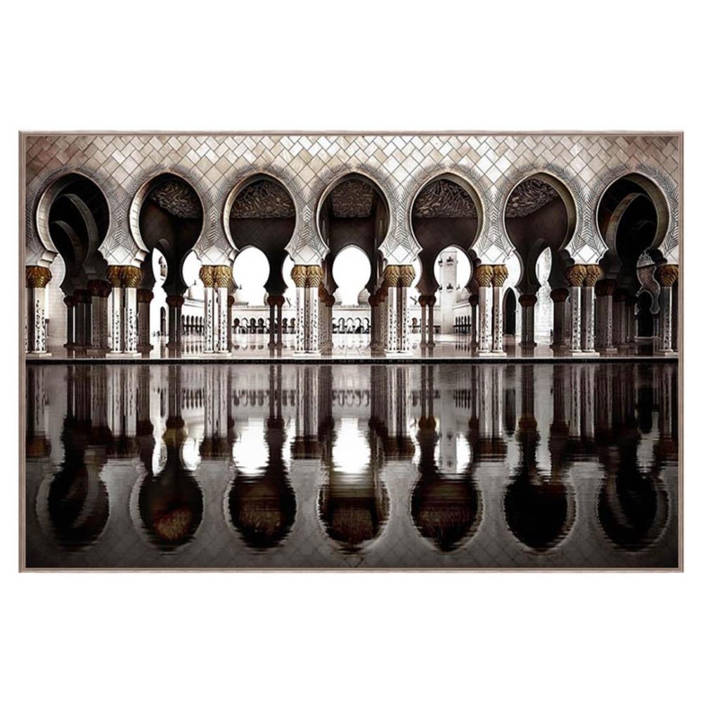1x XL Fotoafdruk op verhard glas, met goud geborsteld kader, afmeting: 122x82cm, 3mm dik verhard glas