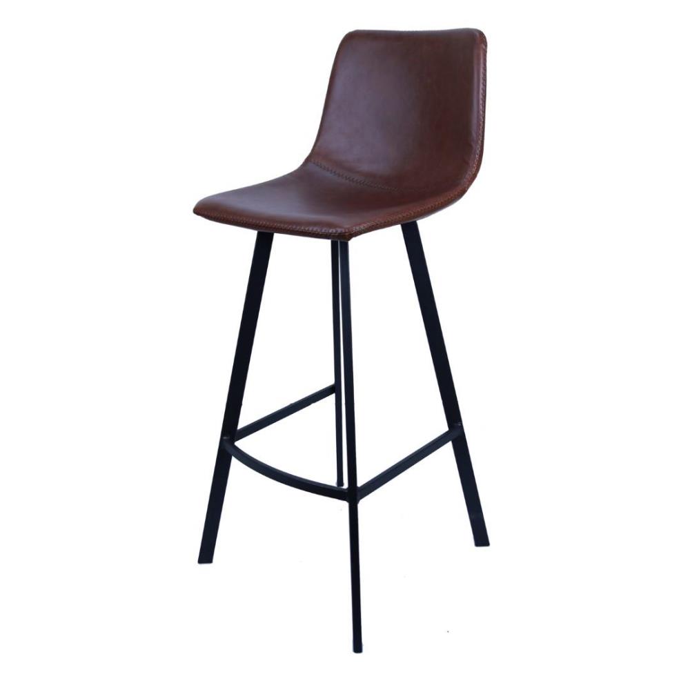Industriele barkruk, texas vintage bekleding PU leer, stalen frame, vaste poten hoog model: zithoogt 75cm, extra verzwaard, zwart poedercoat onderstel, Nieuw in doos