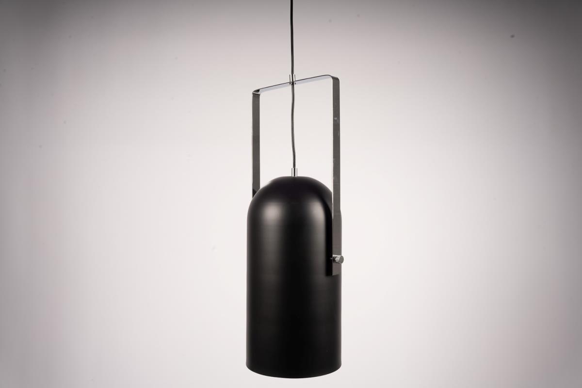 1x Design hanglamp, 1 lichtpunt, chroom frame, mat zwart kap, verstelbare hoogte, E27 socket, max 40W, 61x25cm