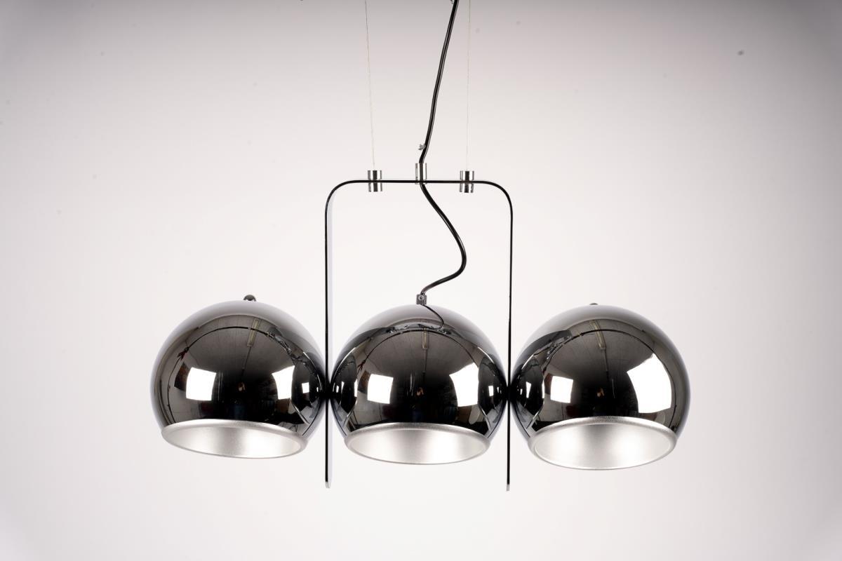 1x Design hanglamp, 3 lichtpunten, chroom frame, zwart glossy kap, verstelbare hoogte, E14 socket, max 40W, 60x34cm