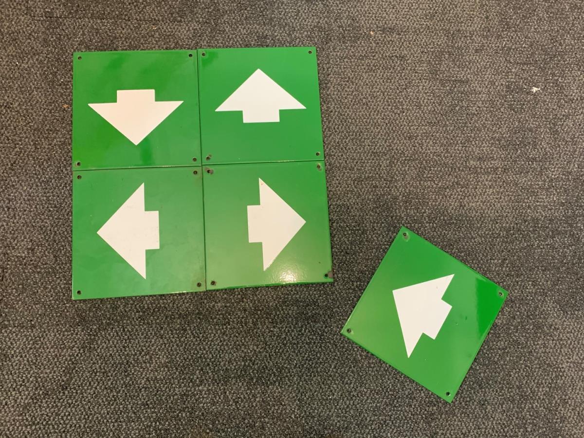 productie jaren '80, 5x 20x20 cm, pijl