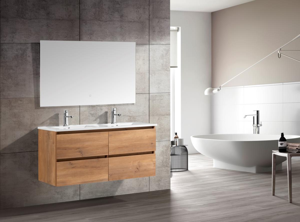 120 cm Design Badkamermeubel - Kleur: Naturel OAK - Afm. B120xH50xD46CM - LED Spiegel 120x70cm - Mineraalmarmer wastel - de onderbouwkast van het badkamermeubel bevat 4 laden en is uitgevoerd met een softclose systeem - kraan en kolomkast niet inbegrepen - ROMA 1200-01