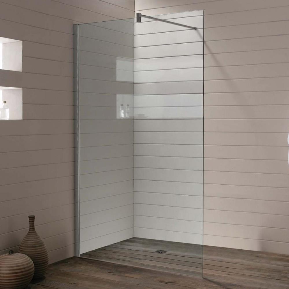 1 st. Inloopdouche met chrome profiel - 90 x 200 - Antikalkbehandeling - NANO-EASY CLEANING GLAS; B 860 x H 2000 mm - Mat zwart profiel breedte 30 mm - Veiligheidsglas Glasdikte 8 mm - 100 cm mat zwart stabilisatiestang inclusief