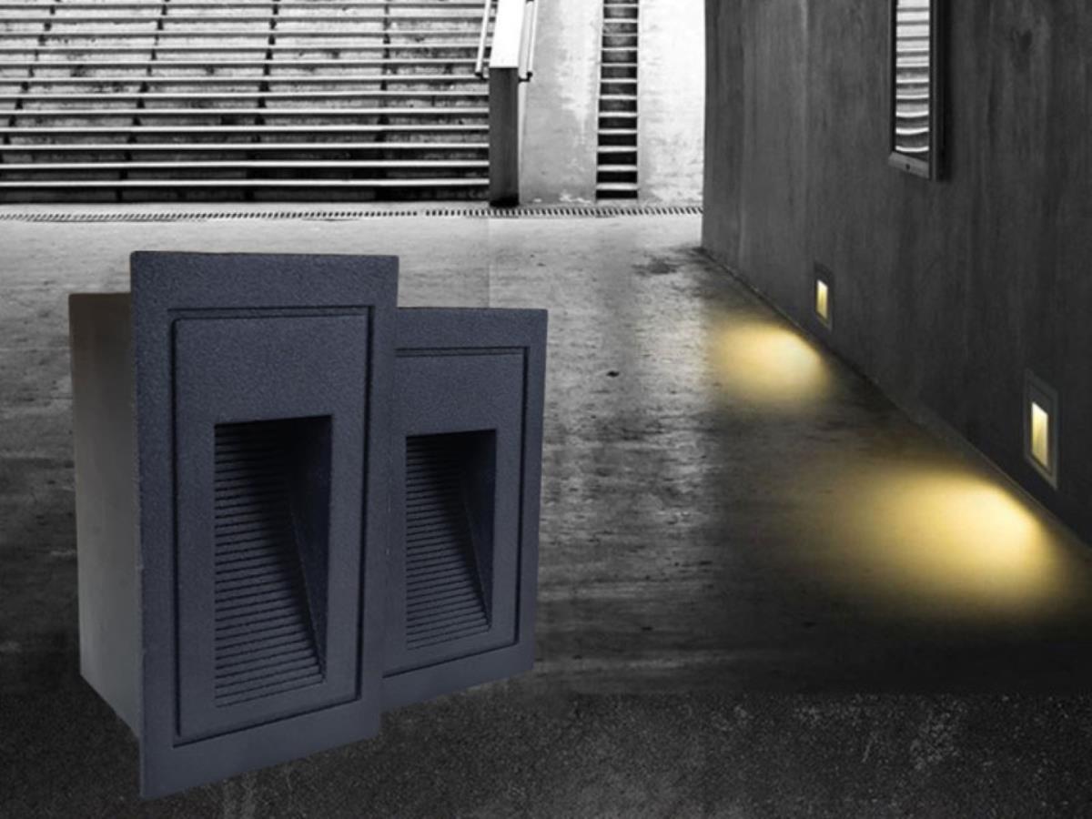 10 x 3 watt COB LED waterdicht inbouw muur & trap verlichting zand zwart 3500K - Lichtstroom: 270 lumen - Lumen/Watt: 90 - Afdichting: IP54 - Lichtkleur: Warm wit, 3500K - Afm.: 60 x 105 x 47 mm - Binnen & buiten - Materiaal: Aluminium - Levensduur: 30.000 uren - Voltage: AC 85-265V (50/60Hz) | SKU: 00421