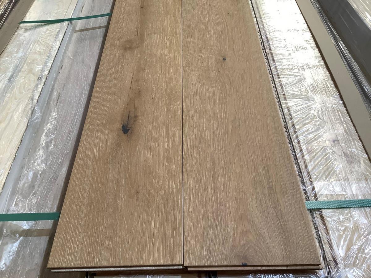 81,31m2 Eiken meerlagen parketvloer, kleur: chalet, kant en klaar behandeld mat geolied, licht gerookt en geborsteld, geschikt voor vloerverwarming, met V-groef, V.V. easy clicksysteem, afmeting: 2200x220x15mm;