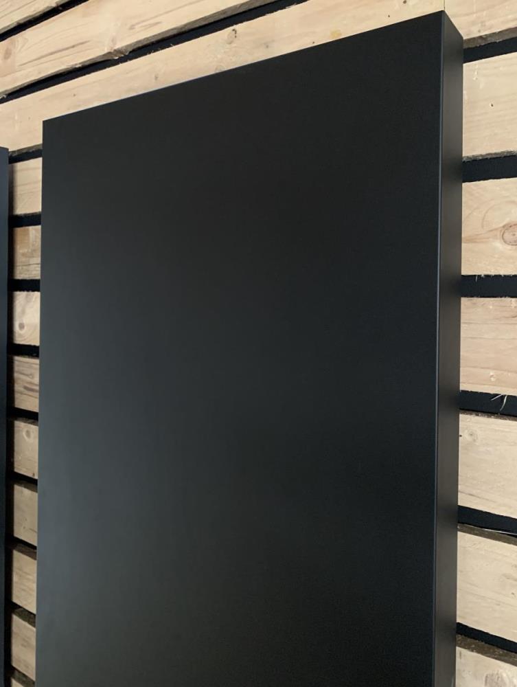 1 x H1800 x B620 mm, vlakke verticale designradiator, T20 dubbel met middenaansluiting PLANO Kleur Mat zwart 1600 Watt Incl. muurbevestiging Design kraanset niet inbegrepen
