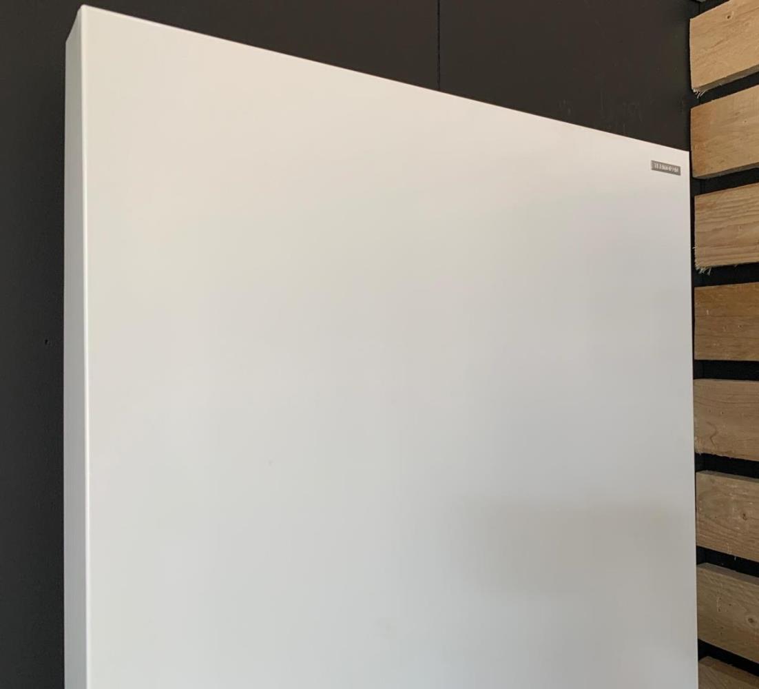 1 x H1800 x B500 mm, vlakke verticale designradiator, T20 dubbel met middenaansluiting PLANO Kleur wit (RAL 9016) 1400 Watt Incl. muurbevestiging Design kraanset niet inbegrepen