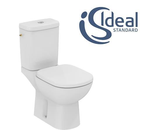 1 x Complete toiletset van IDEAL STANDAART bestaande uit: Porselein pot + soft-close + reservoir met zij-aanlsuiting