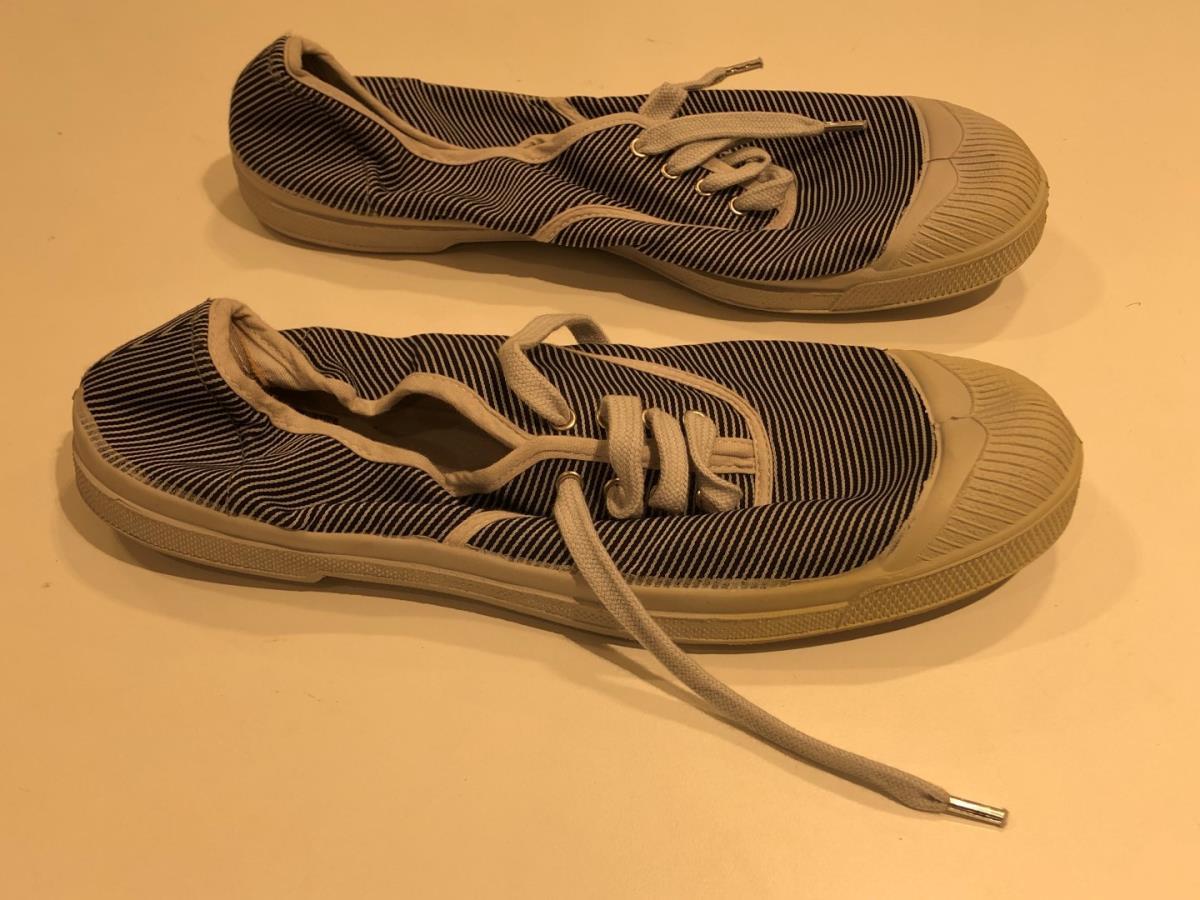 sneaker, blauw gestreept