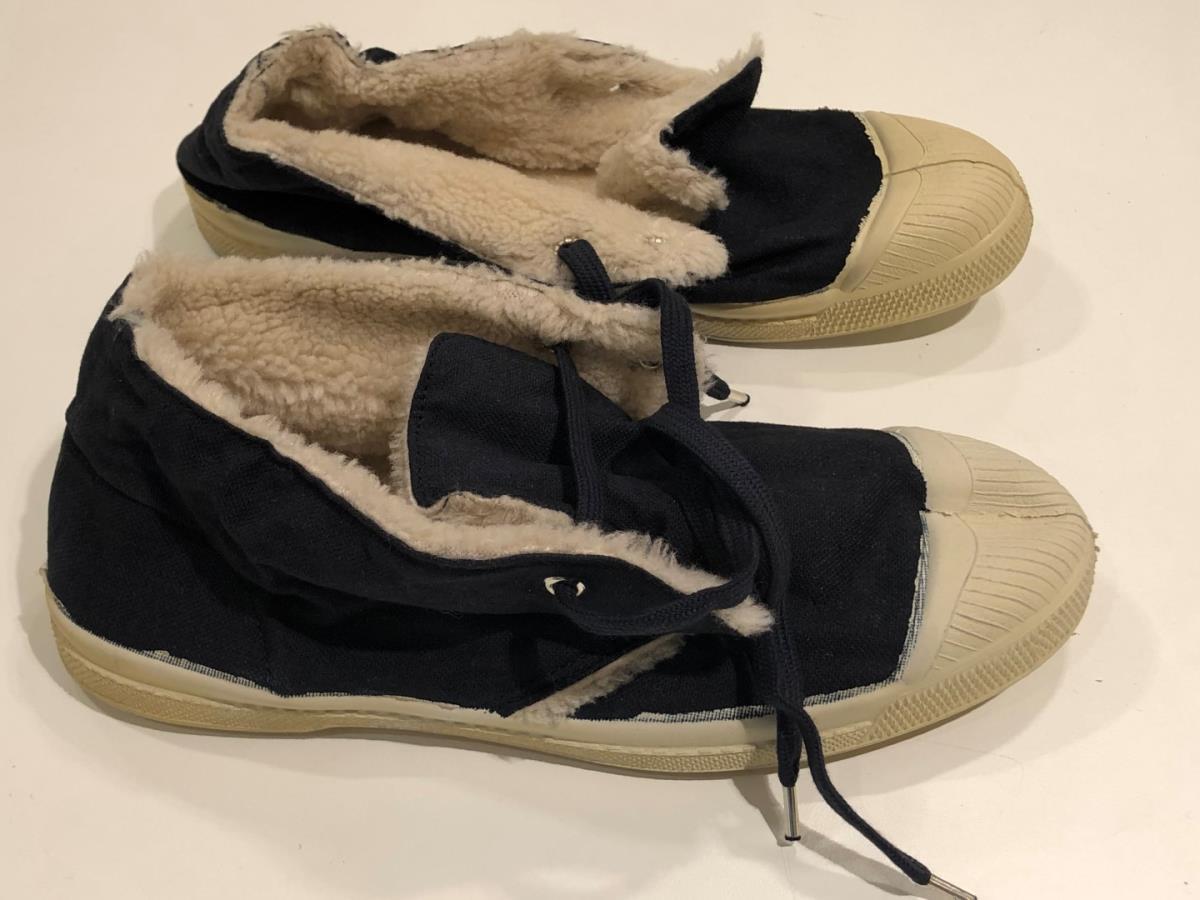 sneaker, blauw hoog met pels