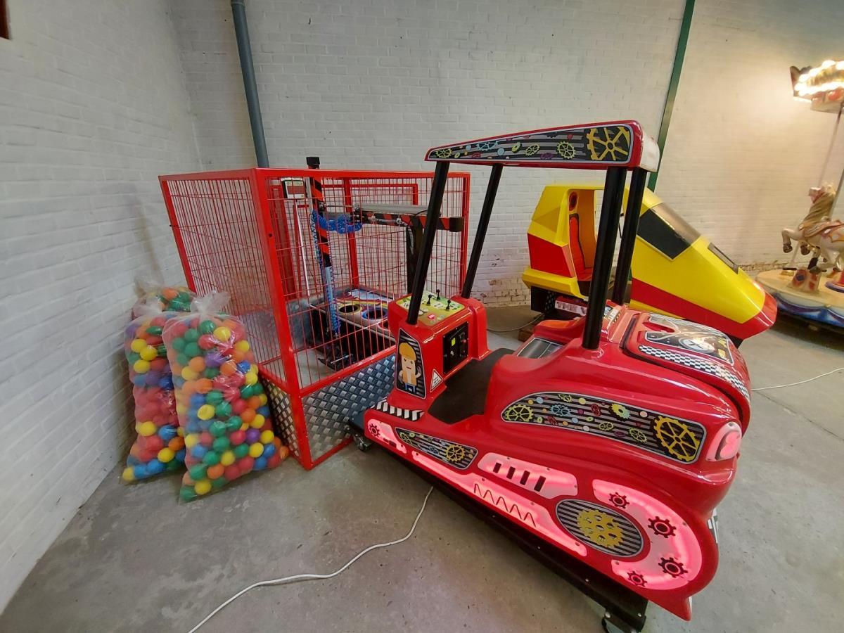 Kinderattractie met 4 pneumatische bewegingen, spel met punten verdienen door ballen juist te plaatsen. Incl Scorebord, kooi en ballen. Werkend op 2€