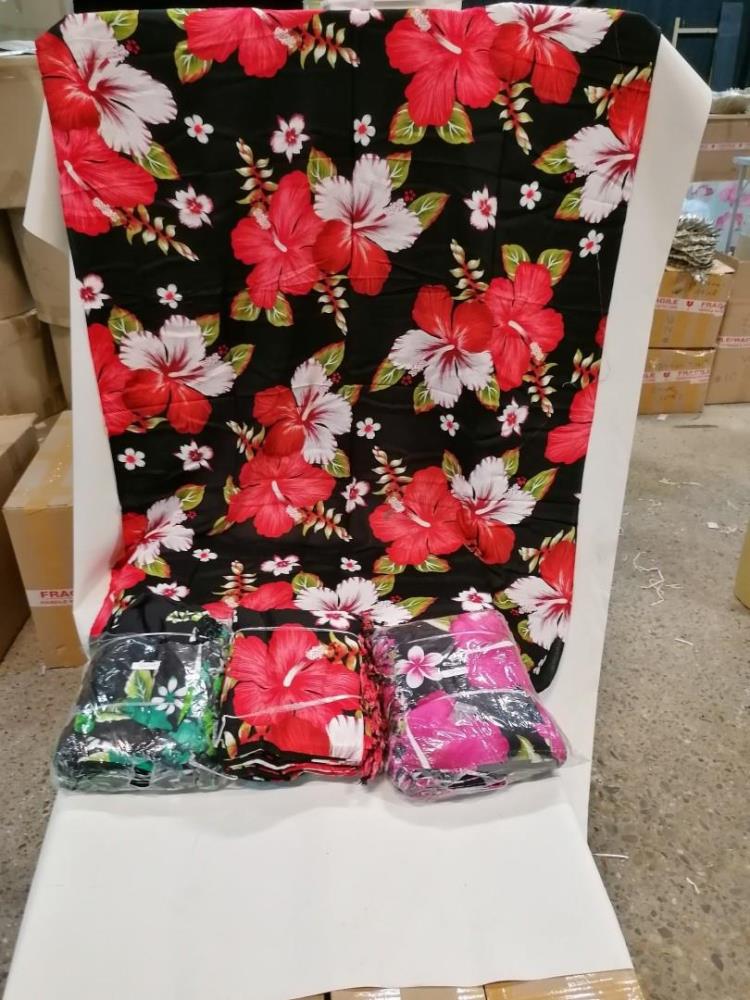 24 stuks sarong/sjaal, nieuw. 3 kleuren, met bloemen en rafel. Rayon.