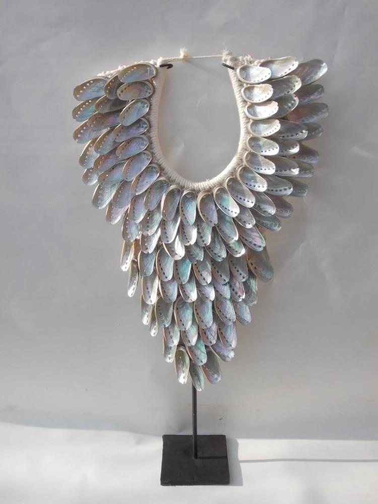 Schelpendeco op standaard. Large, Parelmoer. Afm. Ketting hxb 60x36 cm cm. Gew. 2.0 kg